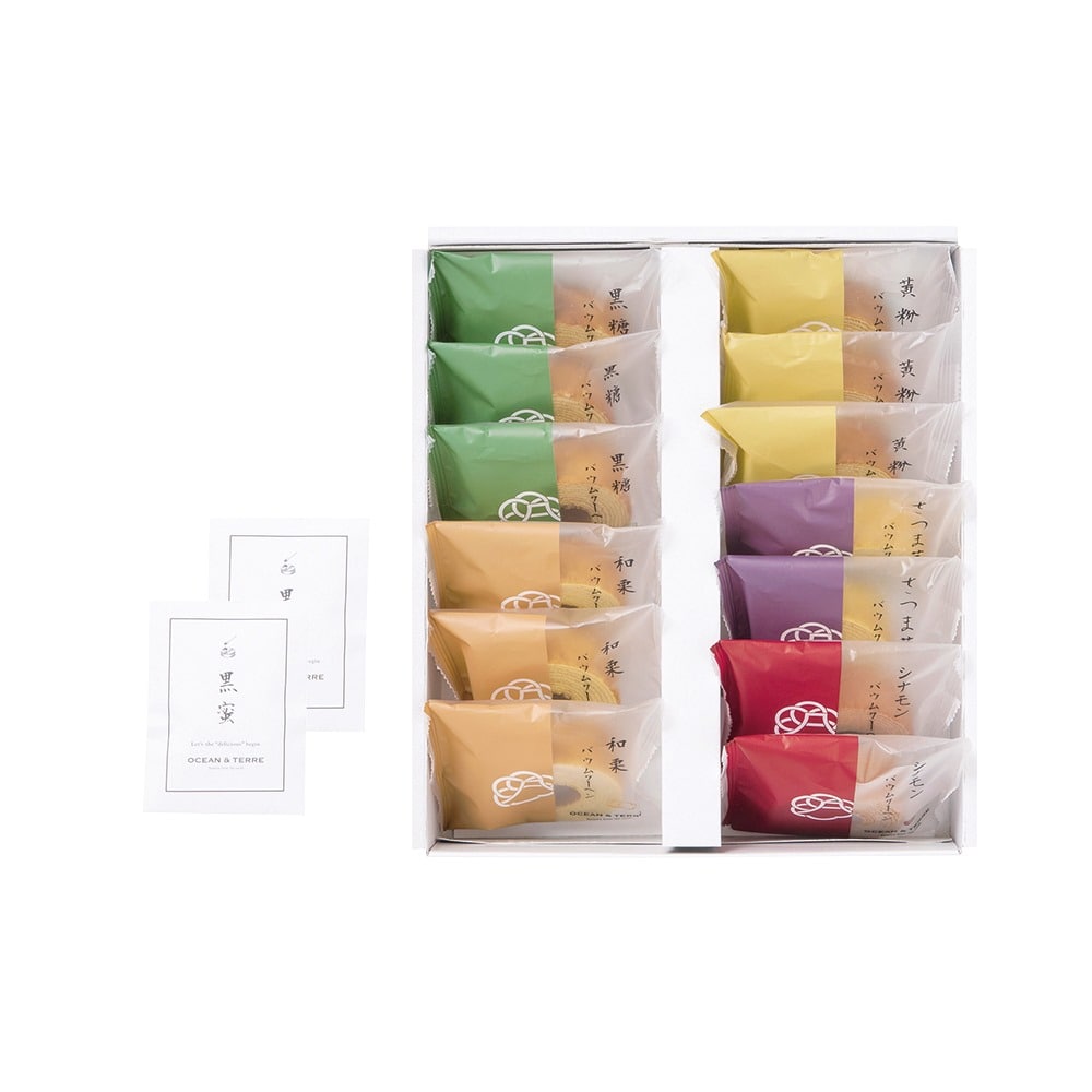 和を味わえるバームクーヘン。ひとくち味わうだけで、「極」の意味を感じられます。黒蜜をかけると、より一層美味しくお召し上がりいただけます。黄粉バーム×3、黒糖バーム×3、シナモンバーム×2、さつま芋バーム×2、和栗バーム×3、黒蜜10g×2