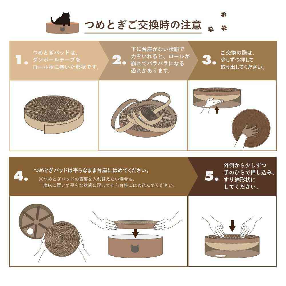 ・本商品は猫壱のバリバリボウルXL交換用爪とぎです。 ・ご使用には、台座が別途必要です。 ・ツメとぎ交換時は、必ず台座にツメとぎをはめ込んで軽い力でゆっくりと形を整えてください。 ・台座にはめないで下に押し込むと段ボールが崩れ使用できなくなります