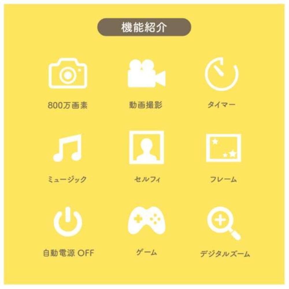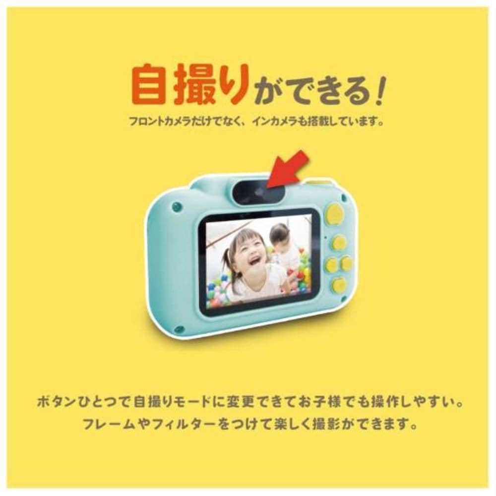 動画もゲームも盛りだくさん!ボタンを押すだけ、お子様にも使いやすいワンタッチ操作。写真や動画の撮影が簡単にできるキッズカメラです。軽量コンパクトな設計で、小さな手でも持ちやすく、持ち運びにも便利です。静止画撮影だけでなく動画撮影にも対応しており、日常の思い出を楽しく記録できます。内蔵フラッシュ搭載で暗い場所でも撮影可能。安全性に配慮した素材を使用し、子どもが安心して使える設計です。シンプルな操作ボタンで直感的に使えるため、初めてのカメラデビューにも最適です。さらに、ミントカラーのかわいらしいデザインで、ギフトとしても喜ばれるアイテムです。800万画素の高画質撮影に対応し、静止画だけでなく動画撮影も可能。タイマー機能や8倍ズーム、明るさ自動調節機能を搭載し、シーンに合わせた撮影ができます。自撮りモードやかわいいフレーム機能で写真をより楽しく演出できるほか、ゲーム機能も備わっており遊びの幅が広がります。約62gと軽量で持ちやすく、USB充電式で繰り返し使えるエコ設計。さらに自動電源OFF機能付きで電池の消耗を防止します。日本語説明書付きで、初めてのお子さまでも安心して操作できるカメラです。