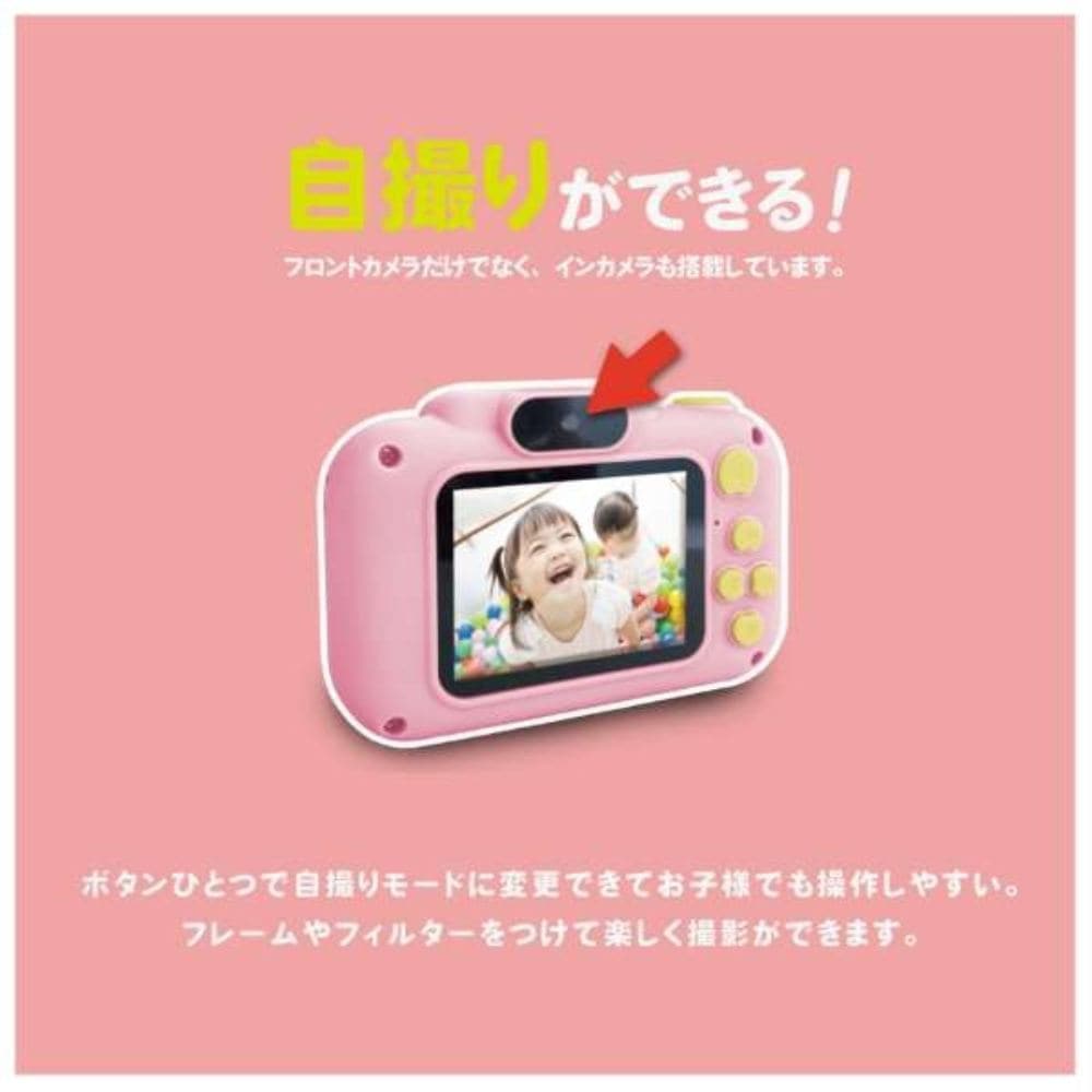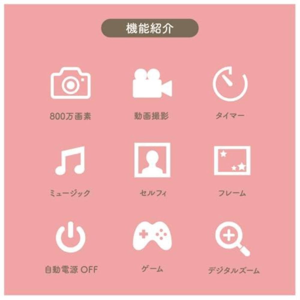 動画もゲームも盛りだくさん!ボタンを押すだけ、お子様にも使いやすいワンタッチ操作。写真や動画の撮影が簡単にできるキッズカメラです。軽量コンパクトな設計で、小さな手でも持ちやすく、持ち運びにも便利です。静止画撮影だけでなく動画撮影にも対応しており、日常の思い出を楽しく記録できます。内蔵フラッシュ搭載で暗い場所でも撮影可能。安全性に配慮した素材を使用し、子どもが安心して使える設計です。シンプルな操作ボタンで直感的に使えるため、初めてのカメラデビューにも最適です。さらに、ピンクカラーのかわいらしいデザインで、ギフトとしても喜ばれるアイテムです。800万画素の高画質撮影に対応し、静止画だけでなく動画撮影も可能。タイマー機能や8倍ズーム、明るさ自動調節機能を搭載し、シーンに合わせた撮影ができます。自撮りモードやかわいいフレーム機能で写真をより楽しく演出できるほか、ゲーム機能も備わっており遊びの幅が広がります。約62gと軽量で持ちやすく、USB充電式で繰り返し使えるエコ設計。さらに自動電源OFF機能付きで電池の消耗を防止します。日本語説明書付きで、初めてのお子さまでも安心して操作できるカメラです。