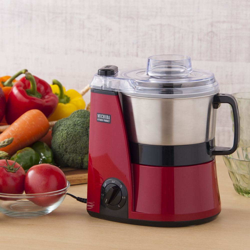 【製品特徴】 ■毎分800回転から3000回転まで無断階にスピードが調節できます。 ■自社製高性能DCモータがかつてない静音性を生み出します。 ■きざむ/まぜる/する/くだく/泡立てる/こねる(ブレード)/おろす(グレーター)/ひく/の1台8役 【製品仕様】 ●商品サイズ:幅 21cm×高さ 25cm×奥行 16cm ●重量:約 3.1kg ●電源 / 消費電力:交流100V 50-60Hz 共通 / 140W ●コードの長さ:2.0m ●連続使用可能時間:フードプロセッサー使用時:20分 / 液体使用時:1分 ●容量:一回に調理できる最大量500g(ハンバーグの場合)、500ml(ジュースの場合) ●材質素材: 本体:ABS 容器:SUS ブレード:SUS ブレードホルダー:PP パッキン:ゴム ●付属品:グレーター、スパチュラ、ウェットパッキン、取扱説明書、レシピ本 ※商品の仕様・対応をご確認の上、ご購入ください。