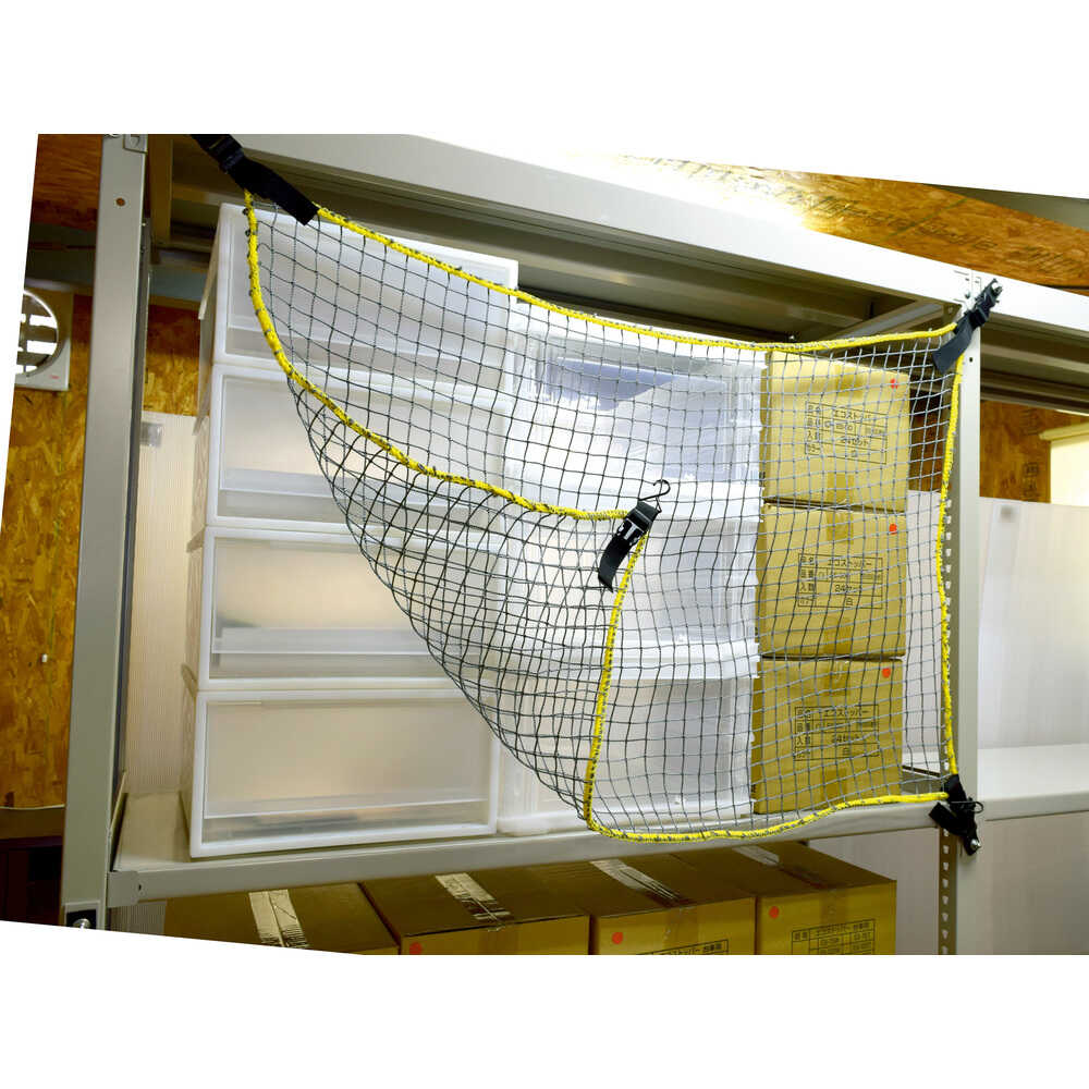 ●ワンタッチ樹脂バックル付で上下左右どこからでも取り外しが可能です。●下部左右にフックがあり、引っ掛けることで邪魔にならずに収容品を取り出すことができます。●取付方法は粘着またはボルト固定からお選びいただけます。●左右下部にフックがあり、収容品を取り出す際に引っ掛けることで邪魔にならず出し入れが可能です。●阪神淡路大震災震度7相当で加振試験を実施・クリア済みです。●幅(mm):1620●長さ(mm):700●取付範囲(mm):1700~1760●ネット部(mm):1620×700●ネット網目(mm):25●ベルト厚(mm):1.3●ベルト幅(mm):25 質量400g