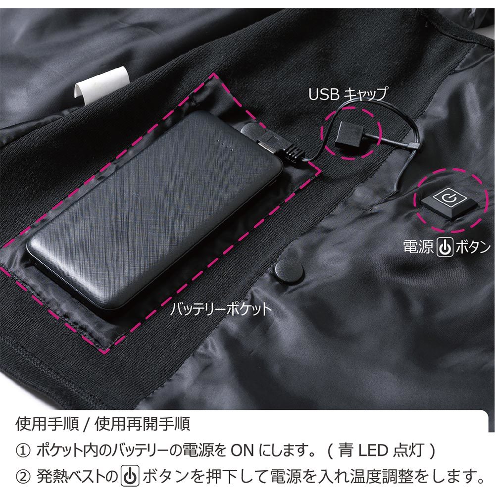 ●ウェア素材:ポリエステル100%●電熱配線:東レ高性能炭素繊維トレカ糸●電源:Li-Po(リチウムバッテリー)