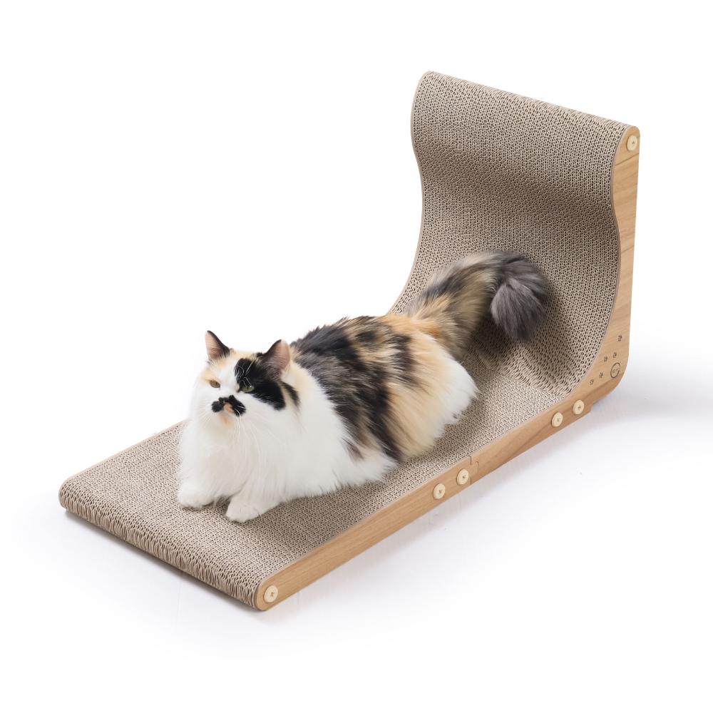 ■研ぐ時にガタガタしない!壁に沿うプレミアム仕様で安定感も抜群! ・バリバリボードシリーズは、壁などの平坦で広い場所で立ってのびのびつめとぎ派の猫におすすめのL字型つめとぎです。 ・バリバリボード ウッドプレミアムは、猫工学に基づき、猫がつめとぎをする時に力がかからない位置に板の接合部がくるよう工夫をし、さらに日本の猫の生活シーンに合わせて壁の下部にある巾木に当たらないように形状をデザインしているので、安定感抜群で思い切りバリバリすることが出来ます。 ■つめとぎパーツは交換可能。背面つめとぎは裏返し使用も可 ・バリバリボード ウッドプレミアムは3枚のつめとぎパーツで構成されており、いずれもつめとぎパーツのみの交換が可能です。 ・2枚の背面つめとぎは裏返しても使用できます。傷んだ部分だけを交換しながら、自分のにおいの染み込んだ、お気に入りのつめとぎを長くお使いいただけます。 ・まるごと買い替えが不要なので経済的で、猫と暮らすあなたにも嬉しく、環境にも優しい仕様です。 ※つめとぎパーツと外枠はプラスチックネジで固定する仕様です。