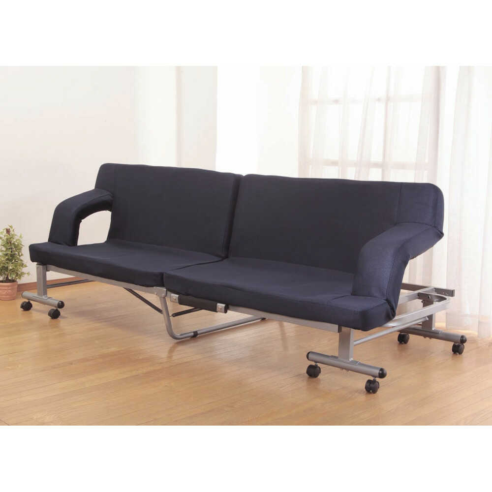 組立不要!!届いたその日から使える完成品の折りたたみソファベッド。 ●様々な生活スタイルに合わせて、形を変える多機能ソファベッド。ベッドにもソファにもなるのでテレビを見たり、読書をしたりいろいろな使い方ができます。 ●一般のベッドのような、面倒な組立が要らないので楽々!届いたらすぐに使えます。 ●折りたたんでコンパクトに収納。キャスター付きで移動ラクラク。 ●14段階リクライニング ●ソファ使用時は肘掛け付きで便利。 ●張り地には熱や湿気がこもりにくく、肌ざわりの良いメッシュ素材を採用。 ●移動がラクなストッパー付きキャスター。 ●マットサイズ:約幅90×長さ200cm ●組立不要完成品