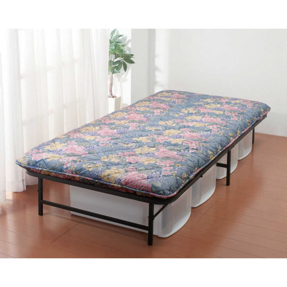 組立不要!届いたその日からすぐに使える収納式のベッド。 ●毎朝布団から起き上がるのが楽になる程よい高さのベッド。パイプベッドには珍しい4分割で折りたたみができるタイプです。 ●お手持ちのプラケースなどを収納することができます。 ●コンパクトに折りたためるのでとても便利。 ●組立不要完成品 ※組立ではございませんが、広げた時に脚をストッパーで固定する工程(1分程度)があります。 ※敷布団・プラケースは商品に含まれておりません。