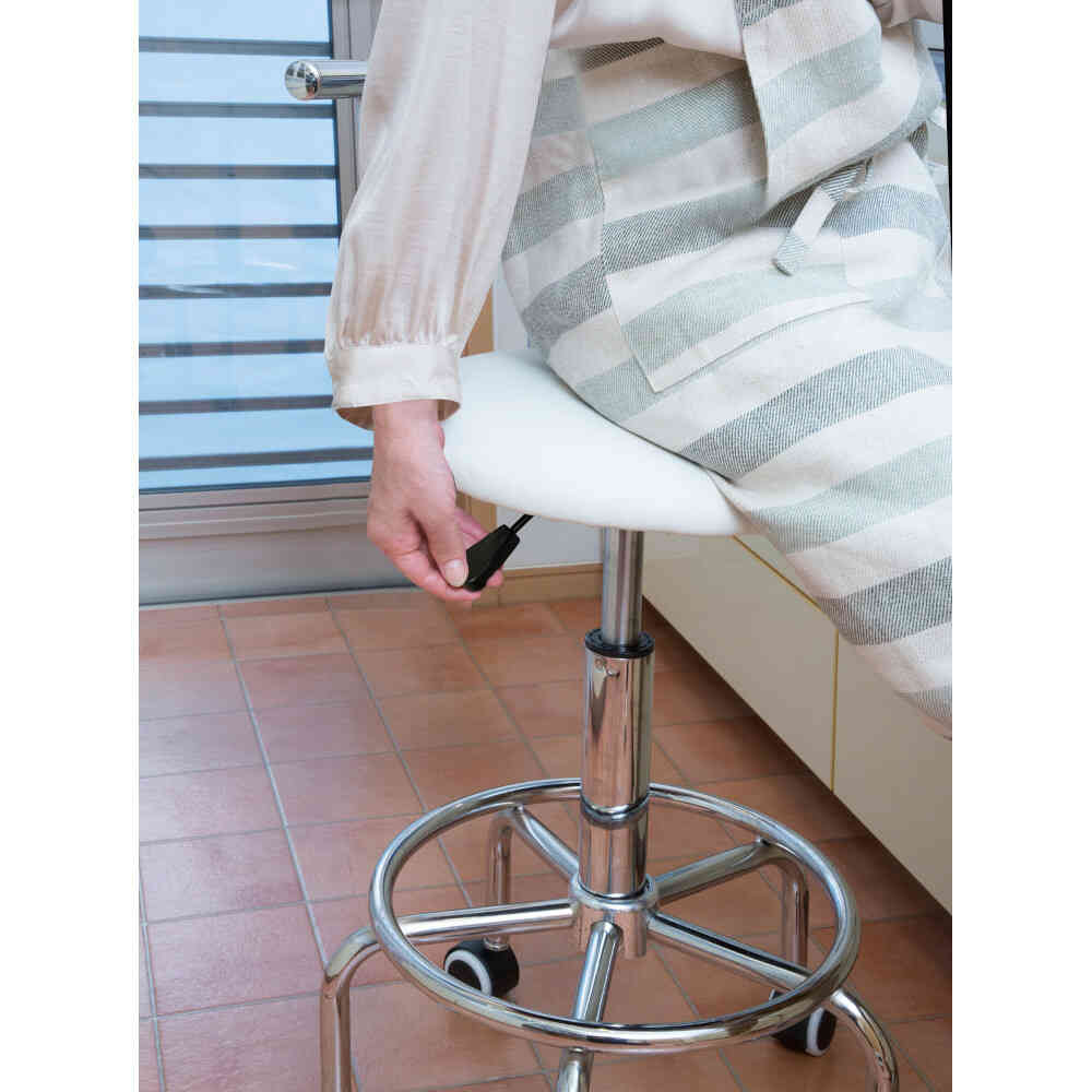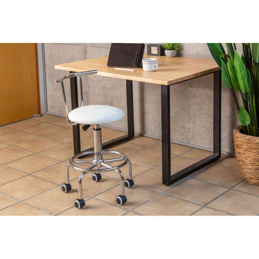 座りながら高さ調節が可能!ガス圧昇降式回転チェア。 ●キッチン以外に、パソコンチェアやカウンターチェアとしても活躍。 ●ガス圧昇降式なので、座面下のレバーでらくらく調整できます。 ●足を乗せられるフットレスト付き。 ●キャスター部は、固定脚に取り換え可能。 ●お客様組立式