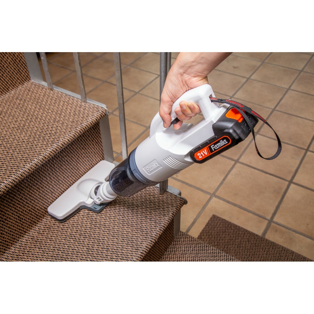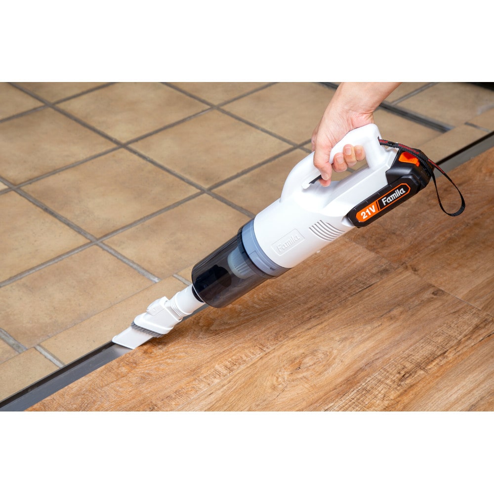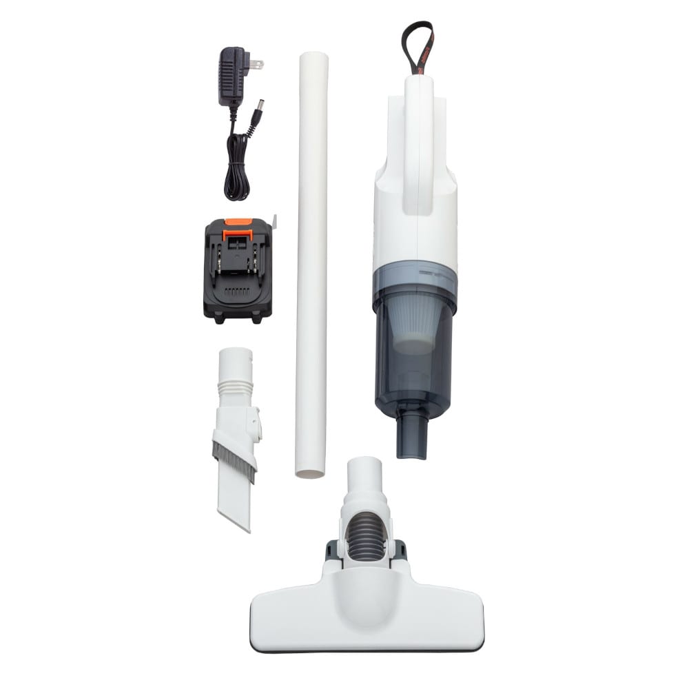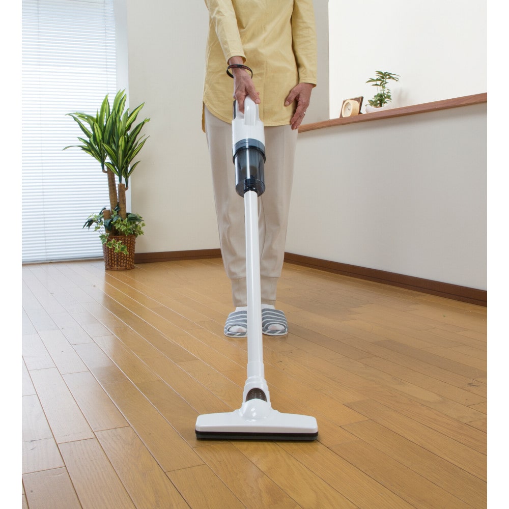 使いやすさにこだわったコードレスクリーナーの決定版。 ●吸込み仕事率約88Wで大きな吸引力:強力なモーターを通し、パワフルな吸引力で髪の毛・ホコリ・屑・猫砂などのゴミをしっかりと吸い取ってくれます。 ●本体680gの軽量でラクラクお掃除:自由に動かせるコードレスタイプ。コードの長さや障害物を気にせず使え、取り回しの良さが魅力です。 ●小型ブラシで狭いところも取り回しがラクラク:様々なシーンで大活躍!壁際や角にもスムーズに対応、家具の狭い隅にも!隙間までキレイにします。 ●透明カップでゴミの容量も一目でわかり、ゴミ捨てもラクラク:半透明で中が見えるからゴミ捨てのタイミングを逃しません。紙パックが不要なので経済的です。 ●一部組立式 [仕様] ●電源:AC100V ●充電時間:3時間 ●連続使用時間:約18~19分 ●バッテリー容量:約1,500mAh ●電圧:21V ●吸込仕事率:約88W [セット内容] 本体、ストレートパイプ、ノズル、2WAY隙間ノズル、バッテリー、ACアダプター ●6ヵ月間保証書付き