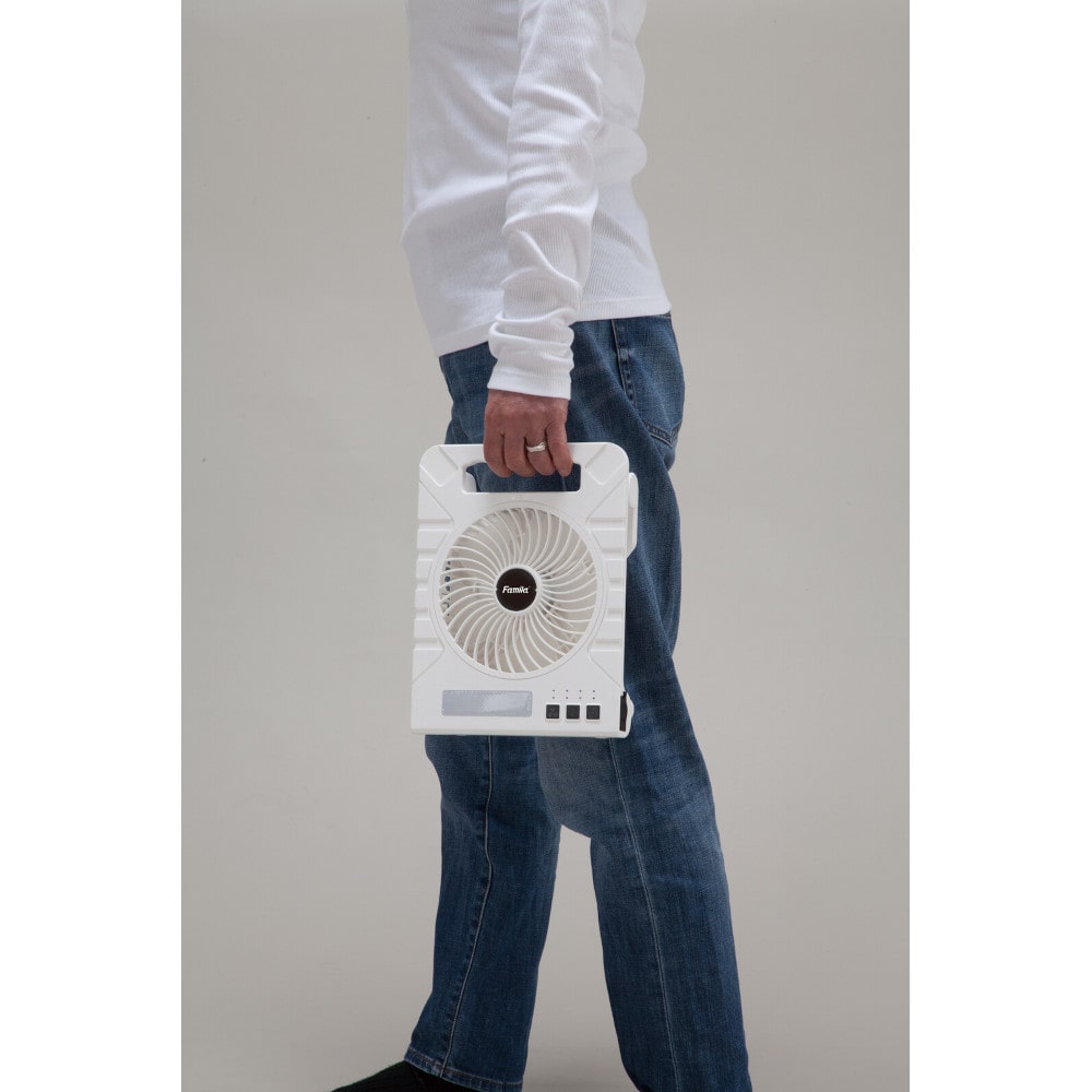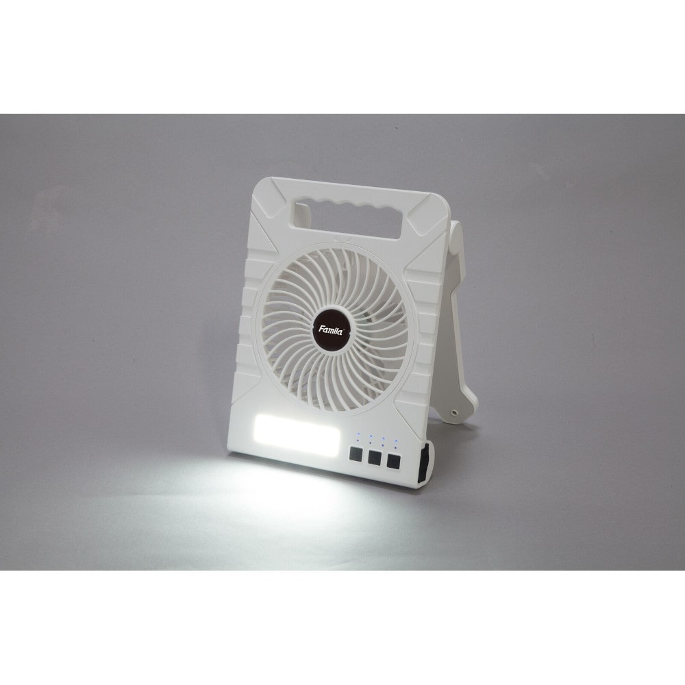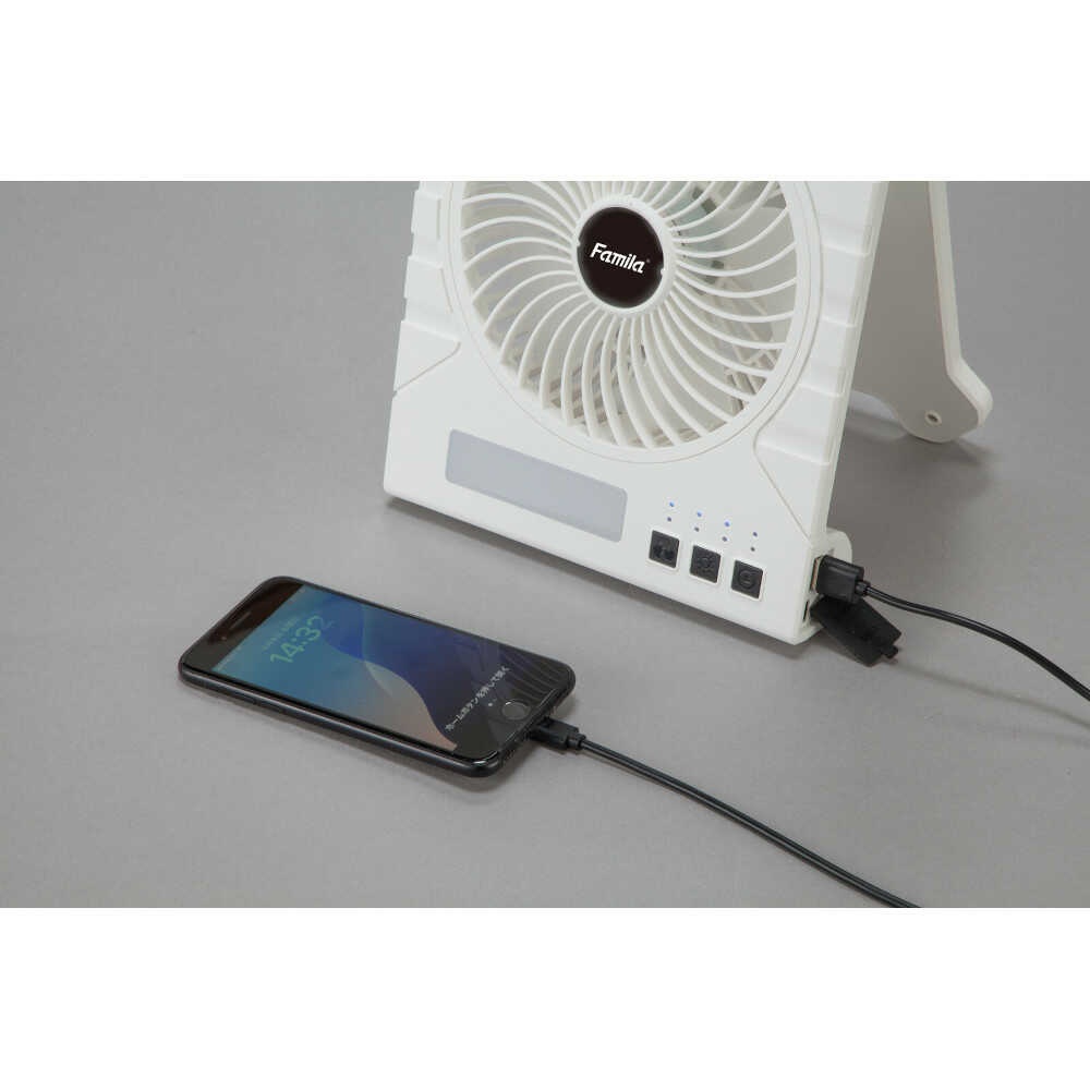 災害や停電時の暑さ対策に!!ソーラー充電式多機能扇風機 ●太陽光でも充電できるソーラーパネルを搭載!電源のない場所でもパワフルな涼風を届けます。LEDライトやモバイルバッテリー機能も備えもしもの非常時やアウトドアにも役立ちます。 ●背面にソーラーパネルを搭載!ソーラーパネルで充電しながらファンやライトを使用可能です ●普段使いの扇風機として、節電対策にもオススメ! ●3段階の広角ライト+スポットライト ●角度調整自在!6段階の角度調整が可能でお好みの風の方向に設定可能です ●大容量バッテリー!スマホ約2.5回充電可能 ●風量4段階・連続33時間稼働(最小時)・タイマー最大4時間 ●扇風機・LEDライト・モバイルバッテリー ●軽量約850g [仕様] ●電源:USBケーブル(TYPE-C)+ACアダプター(5V/2A)、ソーラー、バッテリー(10,000mAh/3.7V) ●消費電力:10W(最大) ●充電時間:USBケーブル(約8時間)、ソーラー(約1.5日) ●防水性能:IPX3 [セット内容] 本体、USB充電ケーブル(TYPE-C)、ACアダプター ●6ヶ月間保証書付き