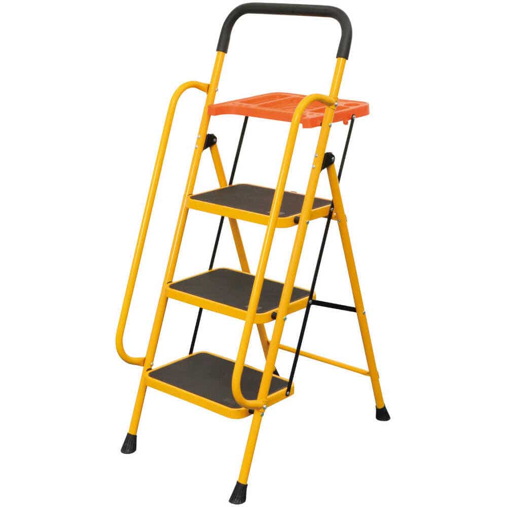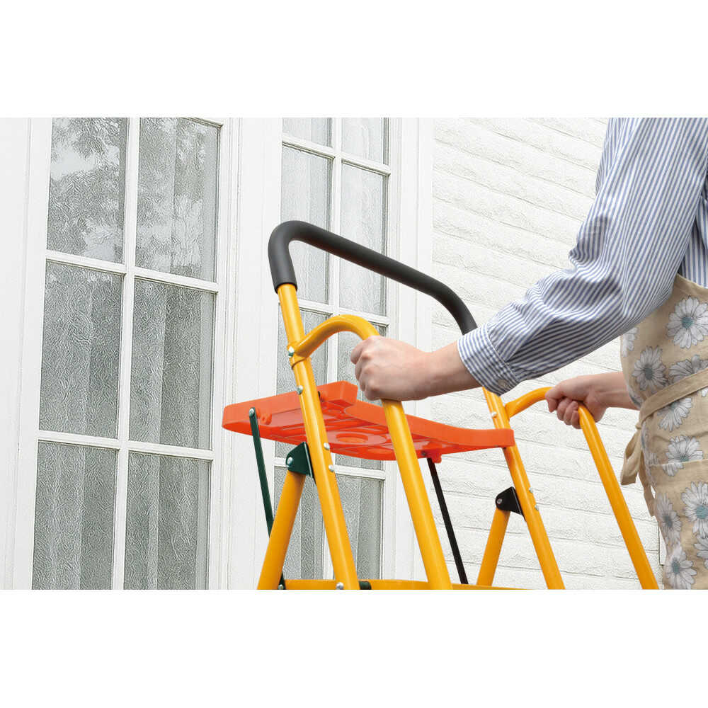 両手すりが付いて昇り降りが安心! ●荷物や工具などが置ける便利なトレー付き ●折りたたんでコンパクトに、スッキリ収納 ●使いたい時にサッと広げて使えるから便利 ●一部組立式 ※両手すりはネジで本体に取り付ける必要があります。