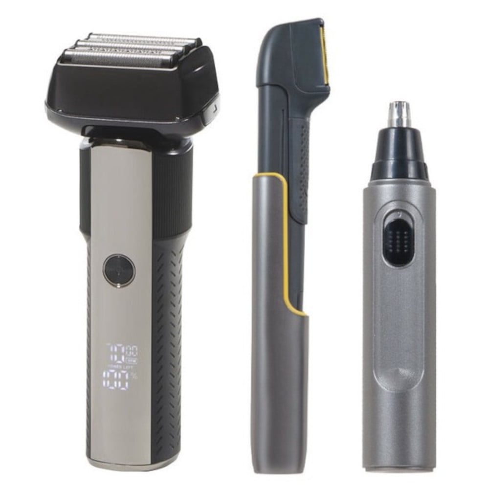 ターボモード搭載の深剃り5枚刃電動シェーバー+クイックチタントリマーDX(ノーズトリマー付き) [仕様] ●[シェーバー]電池容量:リチウムイオン電池1200mAh/3.7V、充電時間:約2時間、回転数:2段階(7000RPM・7500RPM)、連続使用時間:約80分、使用環境温度:5度~35度、防水等級:IPX6 ●[チタントリマー]電源:USBケーブル+ACアダプター、バッテリー:リチウムイオン電池3.7V(600mAh)、充電時間:約120分、動作時間:約100分、LEDライト付き、防水性能:IPX6、回転速度:最大6,090回転/分 ●[ノーズトリマー]電源:単3形乾電池1本使用(別売) [付属品] シェーバー:キャップ・専用USBケーブル(Type-C)・ブラシ・取扱説明書・ACアダプター(規格:5V1A)、チタントリマー:アタッチメント5種(2mm、6mm、13mm、19mm、25mm)・USBケーブル・ACアダプター・ブラシ、ノーズトリマー:ブラシ ●6ヵ月間保証書付き(シェーバーのみ)