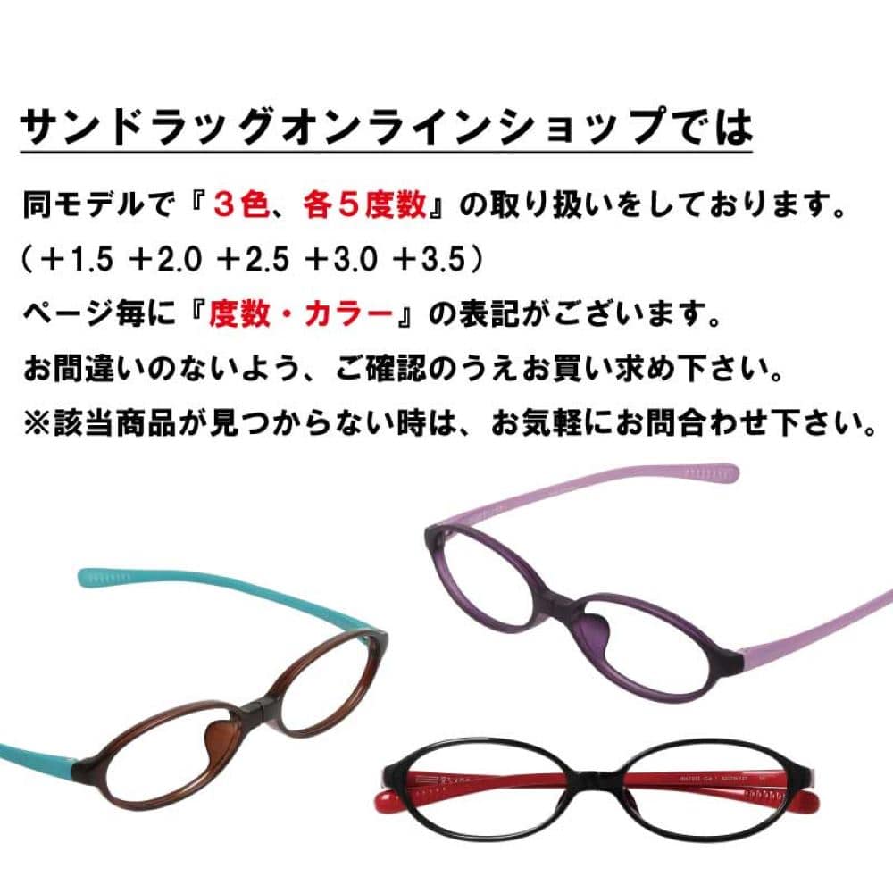 ●オシャレで掛け心地の良い老眼鏡です ●眼鏡が中央部でクルッと回転することで耳掛け部分がレンズを守ってくれます ●紫外線(UV)カット率:99% ●ブルーライトカット率:約17%(JIS規格) ●専用のソフトケース付き(オレンジ) ●サンドラッグオンライン特典のメガネふきクロス付き ●医療機器製造販売届出番号:18B3X10037000003
