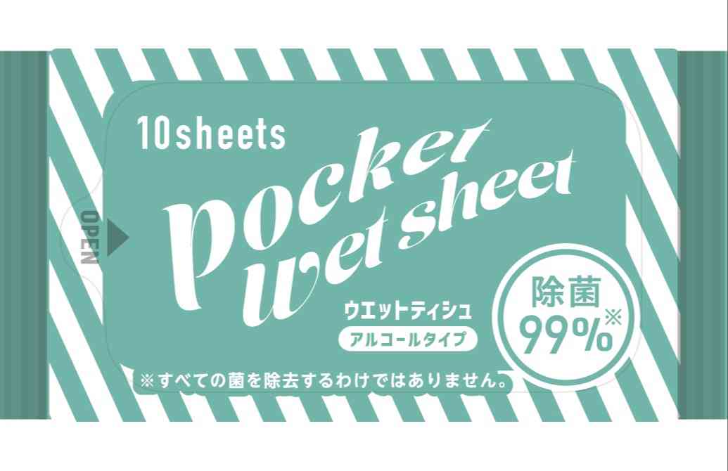 医食同源、ウエットシート、pocket wer sheet、小さい、携帯用、嵩張らない、お手拭き、除菌、抗菌、消臭、手洗い、子供、風邪対策、衛生用品