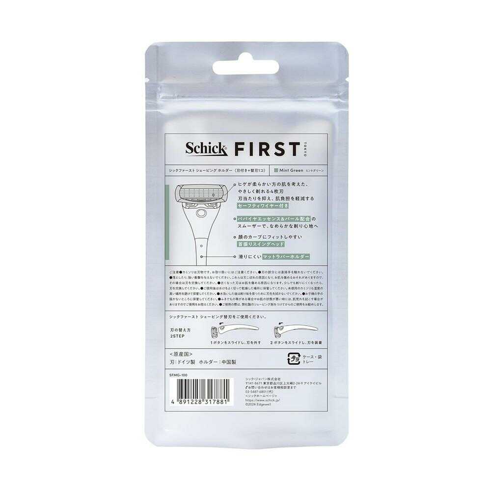 はじめてのシェービングに、やさしさを新発売・シックファーストブランドのカミソリホルダーです。(色:ミントグリーン) ヒゲが薄いGENZ世代向けに、デザイン・安全性・使い心地・品質にこだわって開発しました。