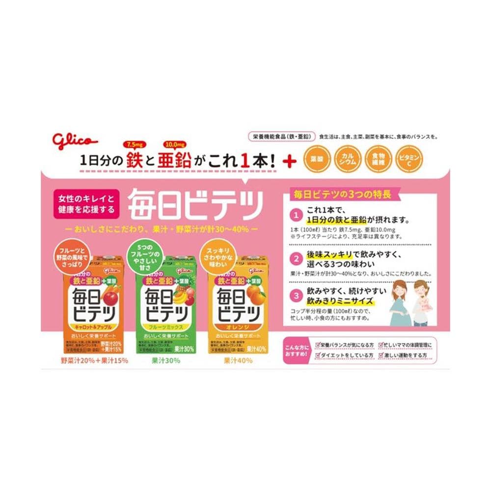 江崎グリコ、グリコ、毎日ビテツ、ビテツ、鉄分、亜鉛、葉酸、マタニティ、オレンジ、飲料、ドリンク、栄養