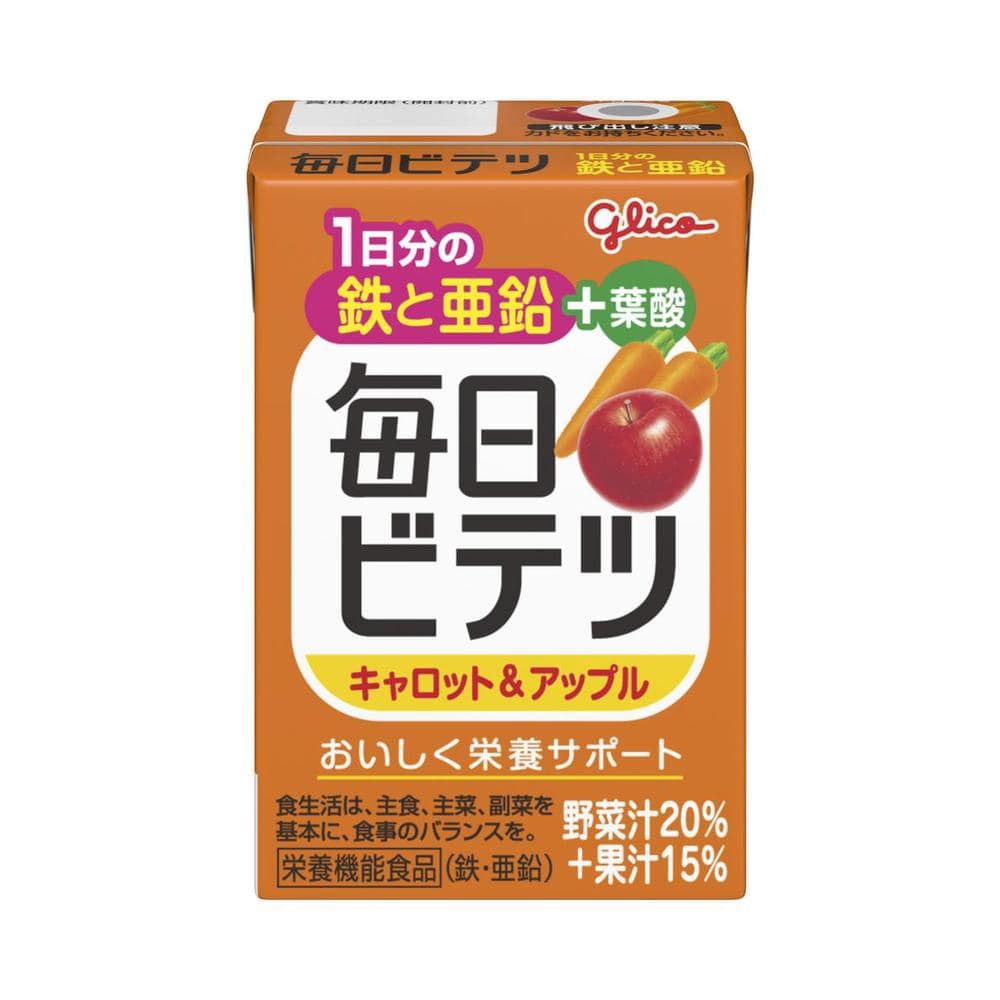 江崎グリコ、グリコ、毎日ビテツ、ビテツ、鉄分、亜鉛、葉酸、マタニティ、キャロット&アップル、飲料、ドリンク、栄養