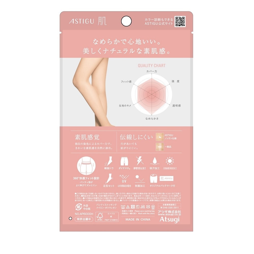 なめらかで心地いい。美しくナチュラルな素肌感。伝線しにくい。パンティ部がよく伸びてズレにくい。補強トウ。ダイヤマチ。静電気防止加工。吸汗加工。光触媒消臭加工。足型セット。UV対策成分配合。制菌加工。オリジナルバックマーク付。