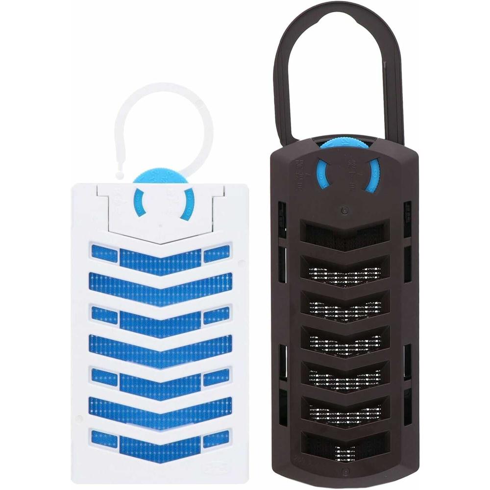 【ベランダ用】 ●つるしてご使用になる場合:フックを上にスライドさせて、フックの先端を容器の裏の穴に固定してください。 ●置いてご使用になる場合:そのまま横置きにしてください。 ●使用の目安:ベランダ等、気になる場所に1個