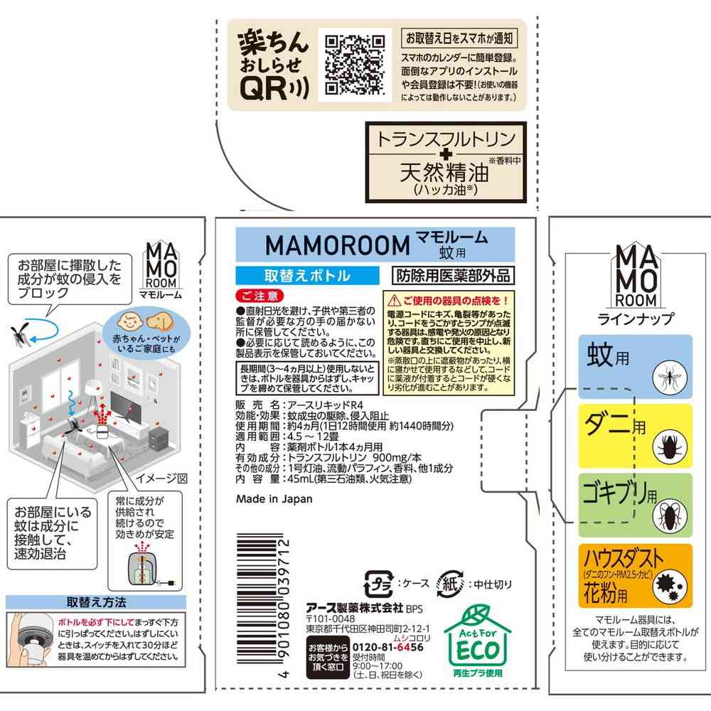 ●蚊からお部屋を守る ●スイッチONするだけで、超マイクロ粒子がお部屋のすみずみまで広がります。 ●お部屋にいる蚊は成分に接触して、速効退治 ●常に成分が供給され続けるので効きめが安定 ●お部屋に揮散した成分が蚊の侵入をブロック ●トランスフルトリン+天然精油(ハッカ油※)※香料中 【使用範囲】4.5畳~12畳 【効果持続期間】約1440時間(1日12時間使用で120日間) 【防除用医薬部外品】