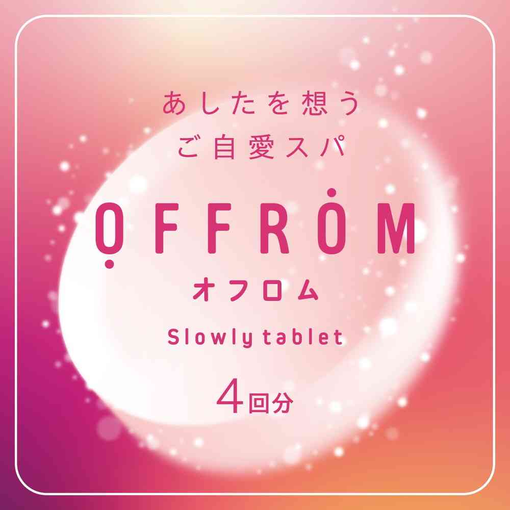 OFFROM、入浴剤、炭酸入浴剤、発泡入浴剤、炭酸、バブル、重炭酸、高濃度、温泉成分、保湿成分、発汗、錠剤、タブレット、個包装、分包、にごり、リラックス、医薬部外品、薬用、疲労回復、肩こり、腰痛、あせも、しっしん、にきび、荒れ性、ひび、しもやけ、あかぎれ、うちみ、くじき、神経痛、リウマチ、痔、産前産後、冷え症、日本製、日本、国産、日本産、アース製薬、アース