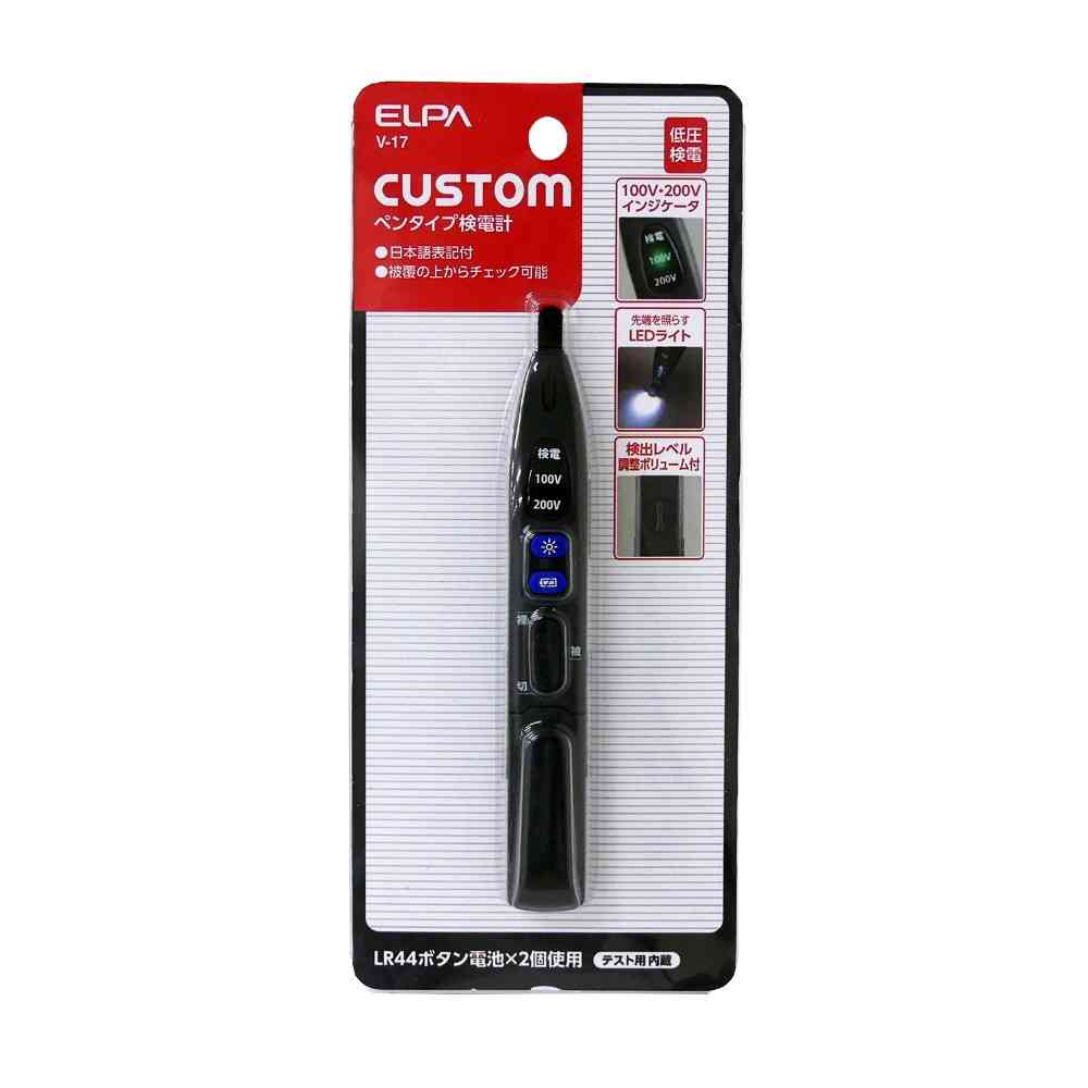 ●非接触式(AC)と接触式(AC)の通電状況を簡単操作でチェックするペンタイプの検電計です。 ●非接触式測定時に感度調節が可能なボリューム付き。 ●AC100V/200Vの電圧判別機能付き。 (接触式測定時のみ。接地の状態が不安定な場合は正確な電圧判別ができません。) ●暗所で便利なLEDライト付き。 ●被覆の上からチェック可能 ■接触式電圧検出範囲:AC7V~1000V ■非接触式電圧検出範囲:AC30V~1000V ■インジケータ:検電LED:非接触モード時 AC30V~1000Vの電圧を検出した際点灯 100V LED:接触モード時 AC7V~約125Vの電圧を検出した際点灯 200V LED:接触モード時 AC約125V~1000Vの電圧を検出した際点灯 ■感度調整機能:本体裏面のボリュームにより検出電圧の感度調整が可能(非接触モード時のみ有効) ■絶縁耐圧:AC2000V/1分間(検知部-スイッチ間) ■照明機能:LEDボタンを押すたびにLEDライトのON/OFFが可能 ■電源:LR44ボタン電池X2個(テスト用 内蔵) ■質量:約24g(電池含む)