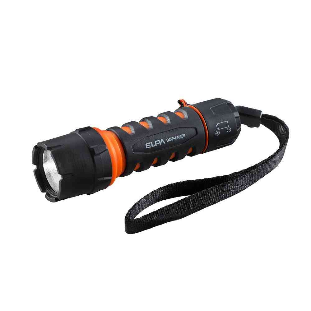 ●ラバーで衝撃を吸収し、ライトをしっかりガード ●水に強い防浸形(IP×7) ■使用電池:単三形アルカリ乾電池×1本(別売) ■連続点灯時間:約1時間 ※アルカリ乾電池使用時 ※電池の性能、使用条件により連続点灯時間は短くなる場合があります。 ■付属品:ハンドストラップ