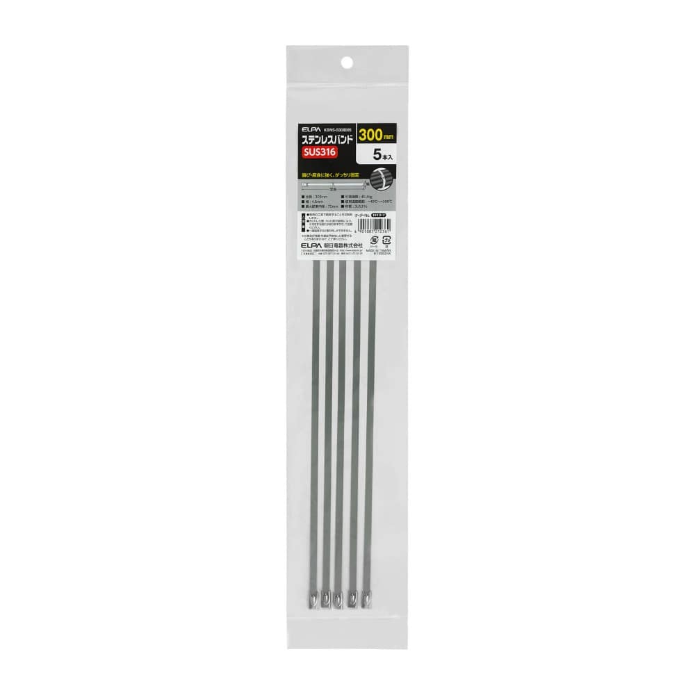 ●錆び・腐食に強く、がっちり固定■全長:300mm ■幅:4.5mm ■最大結束内径:75mm ■引張強度:45.4kg ■使用温度範囲:-40度~+300度 ■材質:SUS316 ■5本入