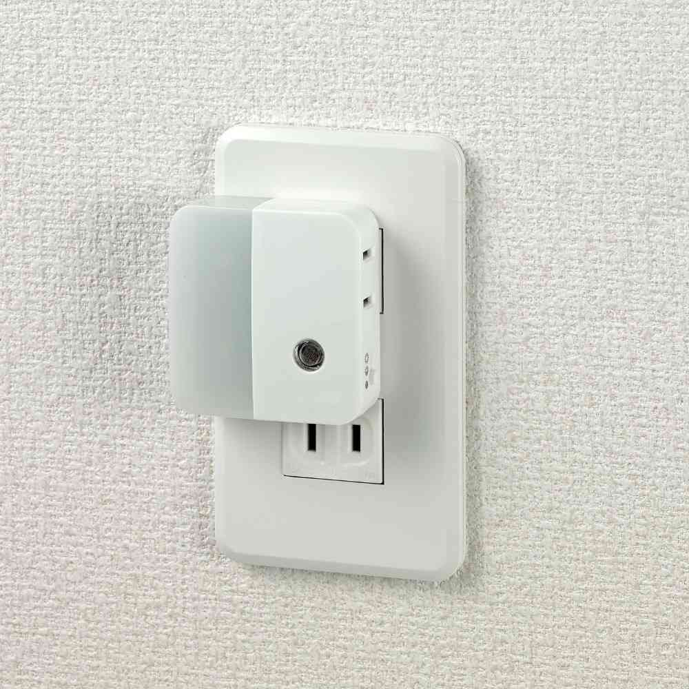 明暗センサー、コンセント式、白色、サービスコンセント付
