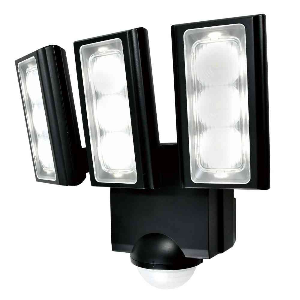 ●センサーが人や車の動きを検知して自動点灯 ●屋外に設置できる防水仕様(IP45 防噴流形) ●乾電池式なのでコンセントがない場所に設置でき、電気代もかかりません ●センサーが検知し点灯を開始する周囲の明るさを調整可能 ●5秒点灯・10秒点灯・10秒点滅の点灯モードからお好みで選択可能 ●LEDなので省エネなのに明るい ●低赤外線・低UVで発熱が少なく虫も集まりにくい光 ●フラッシュ機能 ●赤色LEDが点滅 ●ワイヤレスチャイム増設可能(別売) ■検知方式:赤外線受動式 ■電源:単一形アルカリ乾電池×3本(別売) ■電池寿命:約4.5ヶ月(1日10回 10秒点灯時) ※電池の性能、使用条件により電池寿命は短くなる場合があります。 ■光源:白色LED ※LEDの交換はできません ■全光束:900lm ■点灯・点滅保持時間:5秒点灯、10秒点灯、10秒点滅 ■点灯開始照度:約4lx(夜)~(昼) ■保護等級:IP45(防噴流形) ■質量:約410g(電池除く) ■付属品:取付ネジ 2本、コンクリート用スリーブ 2本、マスキングカバー 1個、クランプ 1セット、拡散パネル 3個