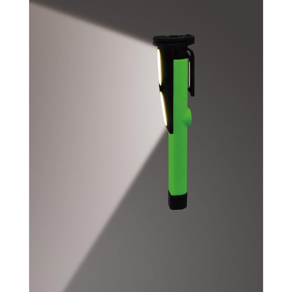 ●光が均一で見やすいCOB LED搭載 ●2灯のライトで広範囲に照射 ●クリップ(可動式)、マグネット、フックで取り付けできる ■使用電池:単四形アルカリ乾電池×3本(別売) ■連続点灯時間:約3時間 ※アルカリ乾電池使用時 ※電池の性能、使用条件により連続点灯時間は短くなる場合があります。 ■光源:白色COB LED×2灯 ■明るさ:240lm(照度 約280lx) ※照度は距離50cm・電池初期値 ■外形寸法(約):幅17×高さ166×奥行38(mm)(最大値) ■質量:約38g(電池除く)