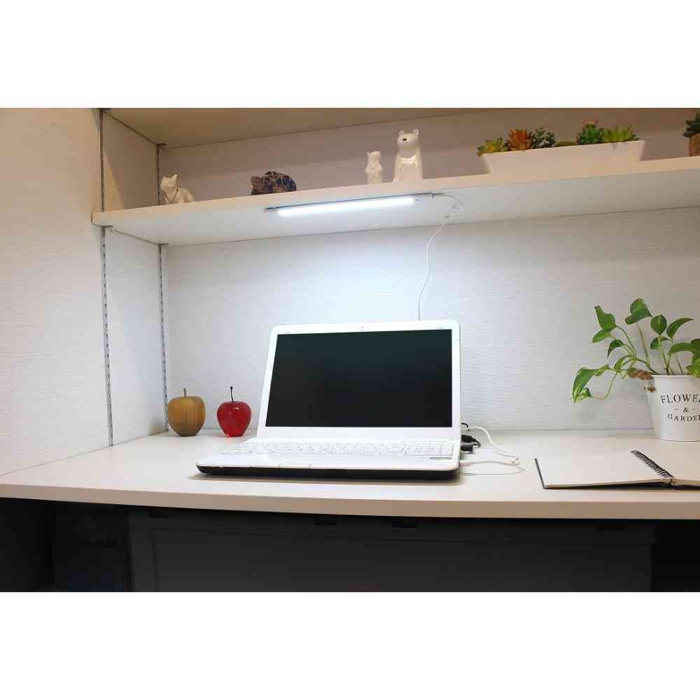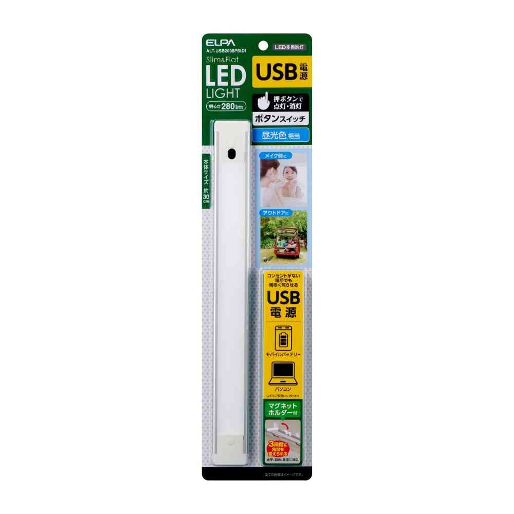 ●USB電源でコンセントがない場所でも明るく照らせます。 モバイルバッテリー・パソコンなどに接続してご使用いただけます。 ●ボタンスイッチを押すたびに点灯(LOW)→点灯(HIGH)→消灯します。 ●付属マグネットホルダーで角度調整可能 ●導光板使用でスリムなのにムラなくしっかり明るい ●薄型スリムなので簡単に取り付け可能 ・マグネットホルダー ・両面テープ ・木ねじ ■電源:DC 5V(microUSB)/1A ■光源:LED(昼光色相当) ■全光束:280lm(明るさ100%点灯時) ■R a:80 ■使用温度範囲:10~40℃ ■外形寸法(約):幅32×長さ304×厚み7(mm)(最大値) ■質量:約90g ■付属品:USBケーブル(約2m)、マグネットホルダー 2個、木ねじ 大(Φ2.8×19mm) 2本 小(Φ2.8×9.5mm) 2本、スリーブ(Φ6×28mm)2本、両面テープ(7.5×2.5cm)2枚