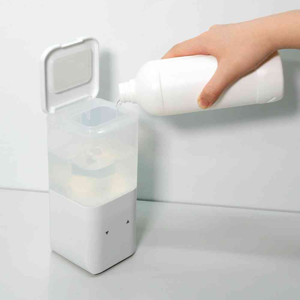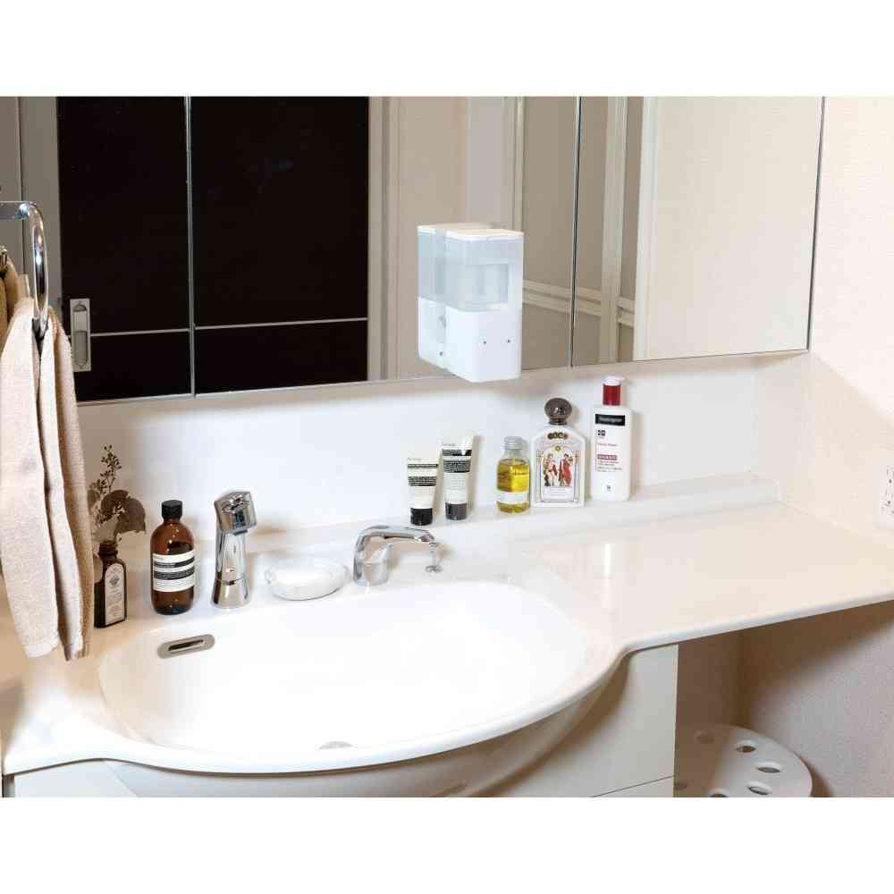 ●消毒液専用 ●付属アタッチメントで前出し可能 ●大容量650mlタンクなので詰替えの手間を減らせます ●15秒間音声と光でお知らせする消毒サポーター機能 ●本体内部やノズルの詰まりを防止できる洗浄モードを搭載。 ●電源スイッチに軽く触れるだけで電源ON/OFFや吐出量の調整ができるタッチセンサー式。 ●フタを外して上から注ぐだけだから簡単で入れやすい上部そそぎ口 ●消毒液の吸込口が底面にあるから最後まで使い切れるタンク ●ワンタッチで取り外せる電池ボックス式でラクラク電池交換 ●濡れた手でも操作できてキッチンや洗面所の水回りでも使える防水性能(IPX4) ■電源:単三形アルカリ乾電池×4本(別売) ■電池寿命:約12ヶ月(1日10回 吐出量 最少時) ※アルカリ乾電池使用時 ※電池の性能、使用条件により電池寿命は短くなる場合があります。 ■使用温度範囲:5℃~40℃ ■タンク容量:約650ml ■接着面:接着性の良い凹凸の無い壁面やガラス ■外形寸法(約):幅91×高さ199×奥行87(mm)(最大値) ■質量:約330g(電池除く) ■防水仕様:IPX4(防沫形) ■付属品:フックシール 2枚、 アタッチメント 2個