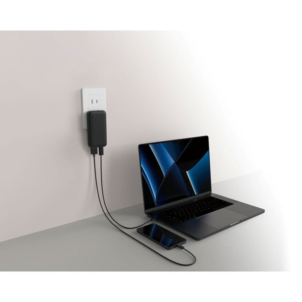 ●PD対応なので最大60Wまでの給電が可能(USBポートのうちType-Cポートのみ使用時) ●PD対応ノートPC、スマートフォン等を超速充電できます(USBポートのうちType-Cポートのみ使用時) ●GaNチップを採用。発熱を抑えて安全に使用できます ●薄型&収納プラグでカバンやポーチにスッキリ収まり携帯しやすい ●2台同時充電可能 ●わずか14.6mmの薄型設計■使用温度範囲:0℃~30℃ ■定格 Type-Aポート:DC5V 3A/9V 3A/12V 3A/20V 2.25A 45WMax Type-Cポート:DC5V 3A/9V 3A/12V 3A/15V 3A/20V 3A 60WMax 2ポート同時使用時:10.2W+45W Max ■ポート数:Type-A 1ポート/Type-C 1ポート ■カラー:ブラック