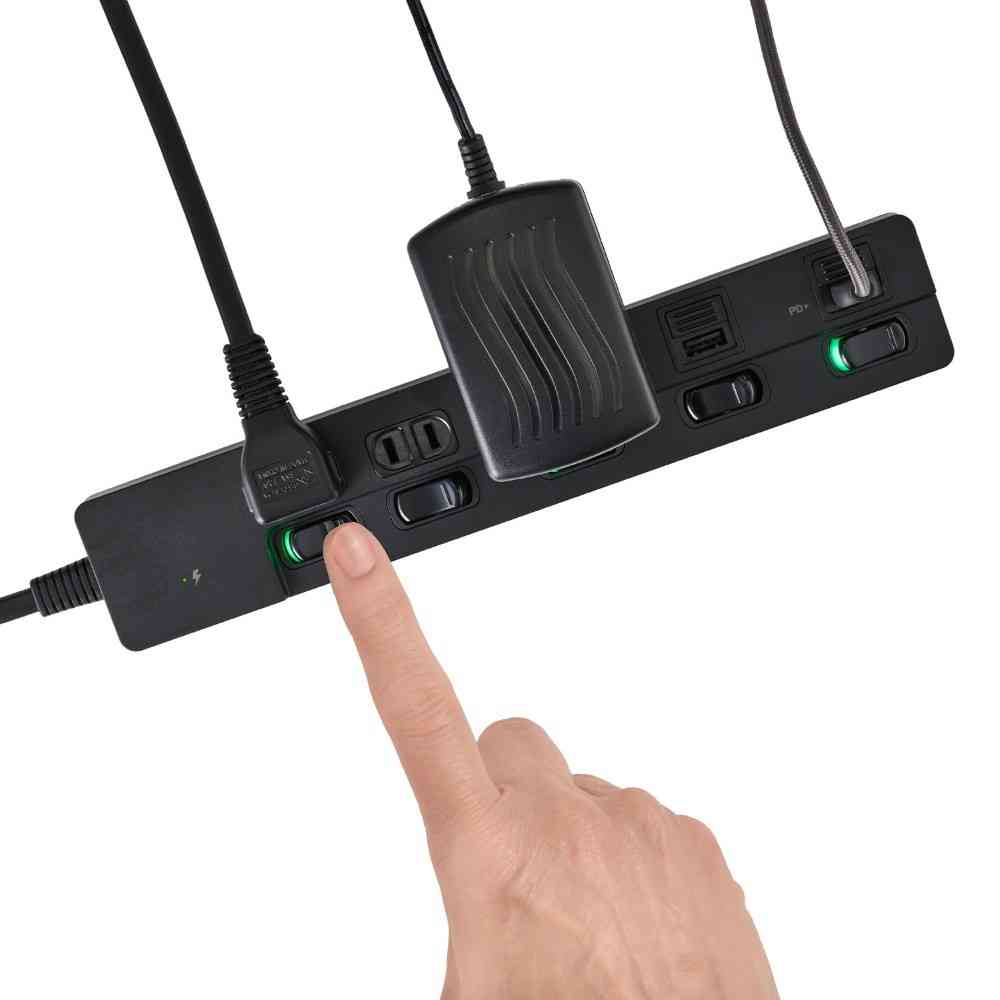 ●PD(パワーデリバリー)対応で、スマートフォン、タブレット等を超速充電できます。最大20Wまでの給電が可能。 ※USBポートのうちType-Cポートのみ使用し、PD対応のケーブル使用時 ●雷から接続機器を守る耐雷サージ機能付 ●USBポート・AC差込口にはホコリ・ゴミの侵入を防ぐ扉付 ●USBポートにも個別スイッチを搭載しているのでUSB機器も抜き差しぜずにON/OFFできます。 ●独立スイッチで電源のON/OFFがひと目でわかるLEDランプ付き ●大きなアダプターも差せるACアダプター用差込口 ●耐トラッキングカバーで電気火災を予防 ●スッキリ配線L型プラグ ●断線に強いコード