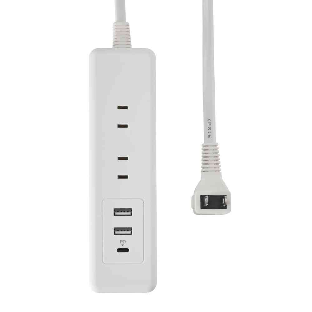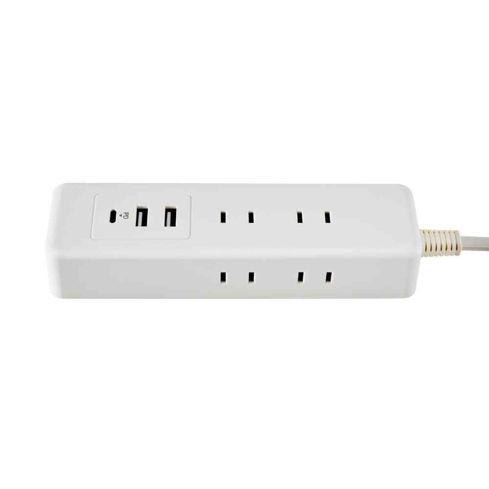 ●PD(パワーデリバリー)対応で、スマートフォン、タブレット等を超速充電できます。最大20Wまでの給電が可能。 ※USBポートのうちType-Cポートのみ使用し、PD対応のケーブル使用時 ●雷から接続機器を守る雷ガード付 ●コンセント6個口+USB3ポートなのにコンパクト ●スッキリ配線L型プラグ ●コードは保護被ふく付安全構造