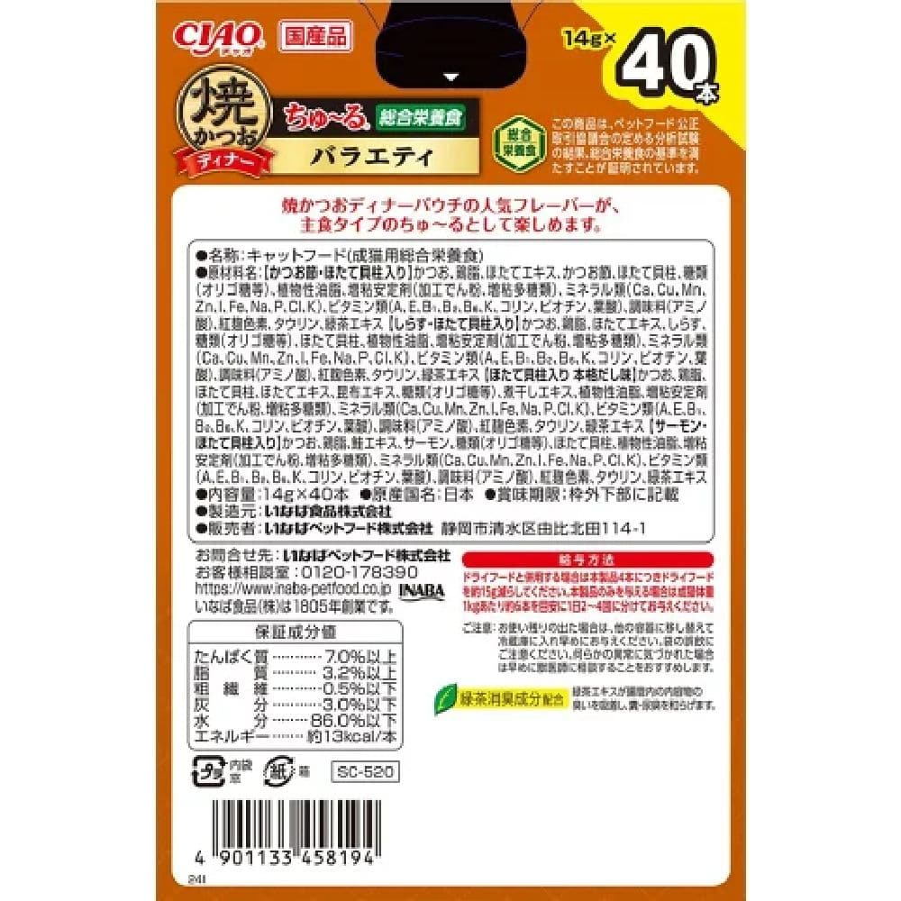 【かつお節・ほたて貝柱入り】かつお、鶏脂、ほたてエキス、かつお節、ほたて貝柱、糖類(オリゴ糖等)、植物性油脂、増粘安定剤(加工でん粉、増粘多糖類)、ミネラル類(Ca、Cu、Mn、Zn、I、Fe、Na、P、Cl、K)、ビタミン類(A、E、B1、B2、B6、K、コリン、ビオチン、葉酸)、調味料(アミノ酸)、紅麹色素、タウリン、緑茶エキス【しらす・ほたて貝柱入り】かつお、鶏脂、ほたてエキス、しらす、糖類(オリゴ糖等)、ほたて貝柱、植物性油脂、増粘安定剤(加工でん粉、増粘多糖類)、ミネラル類(Ca、Cu、Mn、Zn、I、Fe、Na、P、Cl、K)、ビタミン類(A、E、B1、B2、B6、K、コリン、ビオチン、葉酸)、調味料(アミノ酸)、紅麹色素、タウリン、緑茶エキス【ほたて貝柱入り 本格だし味】かつお、鶏脂、ほたて貝柱、ほたてエキス、昆布エキス、糖類(オリゴ糖等)、煮干しエキス、植物性油脂、増粘安定剤(加工でん粉、増粘多糖類)、ミネラル類(Ca、Cu、Mn、Zn、I、Fe、Na、P、Cl、K)、ビタミン類(A、E、B1、B2、B6、K、コリン、ビオチン、葉酸)、調味料(アミノ酸)、紅麹色素、タウリン、緑茶エキス【サーモン・ほたて貝柱入り】かつお、鶏脂、鮭エキス、サーモン、糖類(オリゴ糖等)、ほたて貝柱、植物性油脂、増粘安定剤(加工でん粉、増粘多糖類)、ミネラル類(Ca、Cu、Mn、Zn、I、Fe、Na、P、Cl、K)、ビタミン類(A、E、B1、B2、B6、K、コリン、ビオチン、葉酸)、調味料(アミノ酸)、紅麹色素、タウリン、緑茶エキス