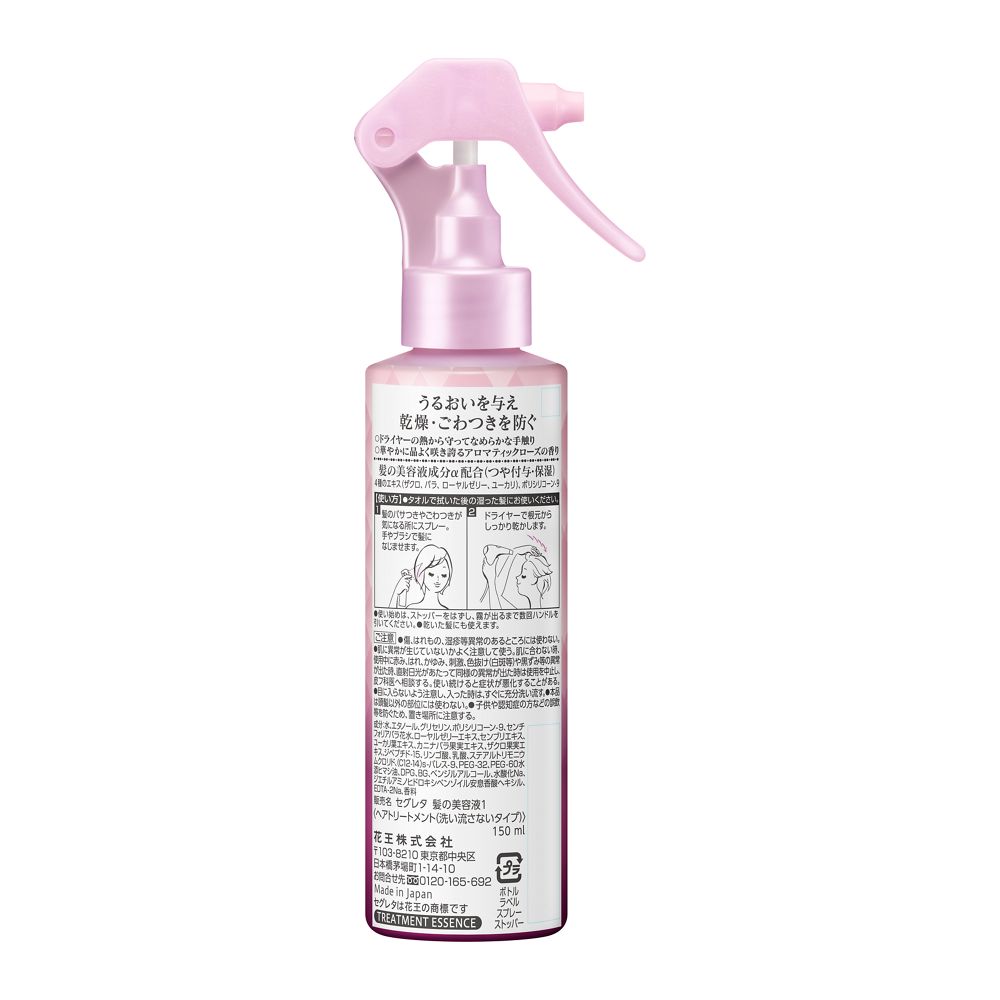 ドライヤーの熱から守って、ふんわりしながら毛先までなめらかな手触りに。うるおいを与え、乾燥・ごわつきを防ぐ。 ●髪の美容液成分α配合(つや付与・保湿)ザクロ・バラ・ローヤルゼリー・ユーカリエキス・ポリシリコーン-9 ●華やかに品よく咲き誇るアロマティックローズの香り <洗い流さないトリートメント>