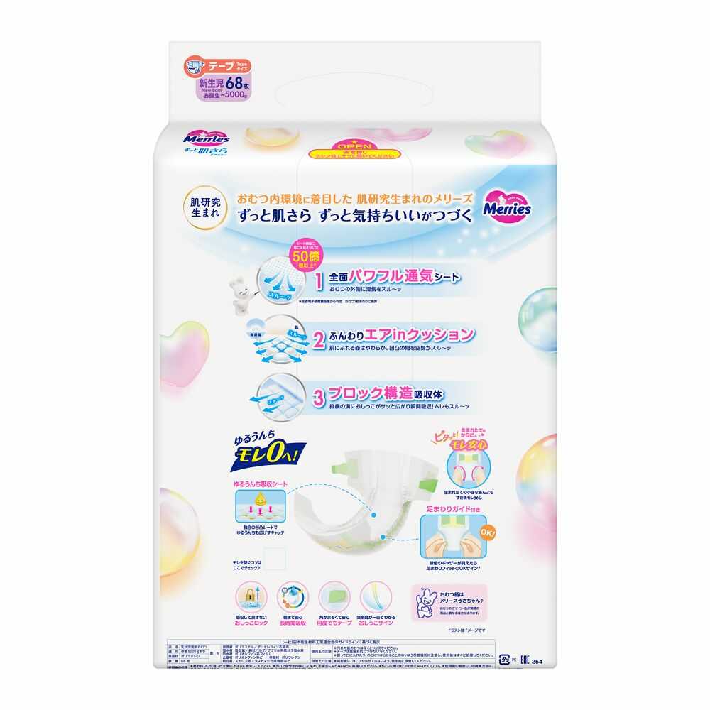 花王、メリーズ、エアスルー、さらさらエアスルー、テープ、おむつ、新生児、赤ちゃん、赤ちゃんおむつ、肌にやさしいおむつ、かぶれにくい、おむつお祝い、おむつ生まれたて