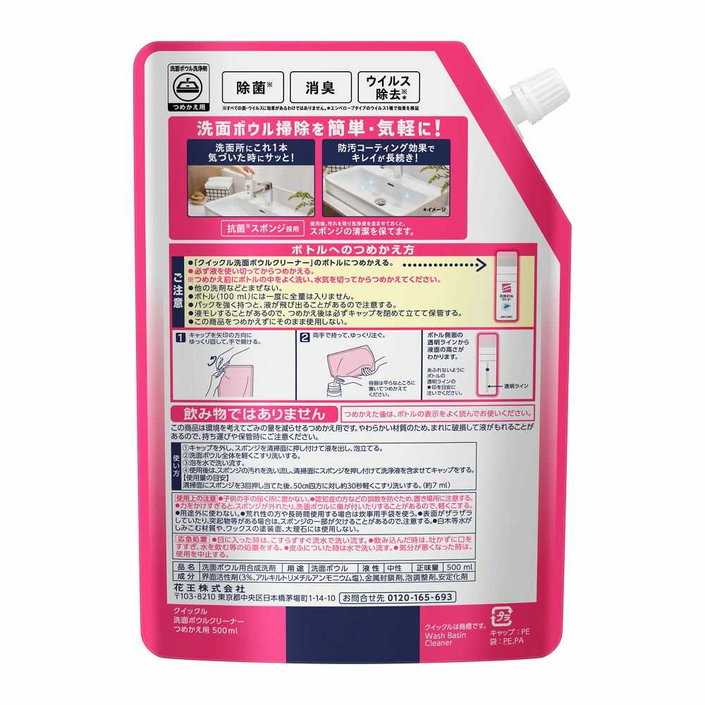 クイックル、洗面ボウルクリーナー、洗剤、スポンジ一体型、洗面ボウル掃除、スポンジ付クリーナー、花王