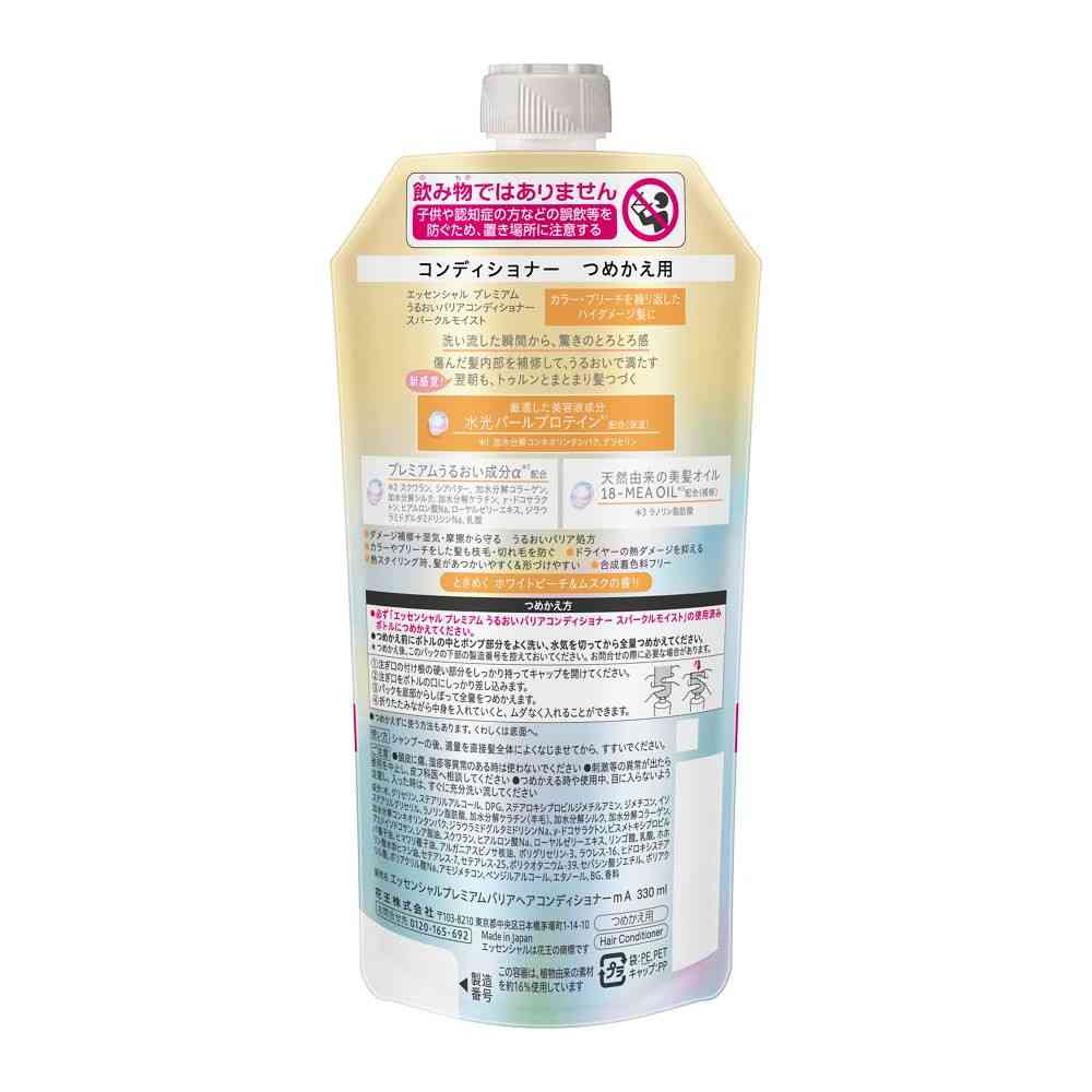 ハイダメージ髪も。洗い流した瞬間から、驚きのとろとろ感。 傷んだ髪内部を補修して、うるおいで満たす。 新感覚!翌朝も、トゥルンとまとまり髪つづく。 ●厳選した美容液成分水光パールプロテイン配合(保湿)(加水分解コンキオリンタンパク、グリセリン) ●ダメージ補修+湿気・摩擦から守る うるおいバリア処方 ●枝毛・切れ毛を防ぐ ●ドライヤーの熱ダメージを抑える ●ときめくホワイトピーチ&ムスクの香り