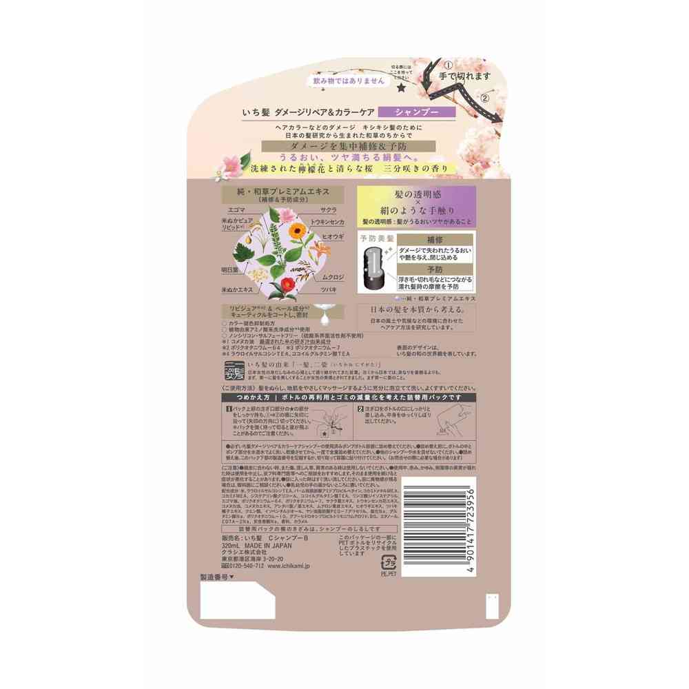 ●日本の髪研究から生まれた和草のちから、ダメージを集中補修+予防美髪ケアシリーズ ●髪の透明感と絹のような手触り ●補修&予防成分「純・和草プレミアムエキス」配合 ●キューティクルをコートし、密封する「リピジュアR&ベール成分」配合 ●カラー褪色抑制処方 ●植物由来アミノ酸系洗浄成分使用 ●ノンシリコン・サルフェートフリー処方 ●洗練された檸檬花と清らかな桜三分咲きの香り