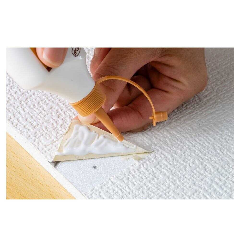 ●壁クロス、壁紙のはがれ、めくれに ●ビニルコートされた壁紙、壁クロス、金属箔系の壁紙 ●ビニールコート面にも使える。水性で使いやすい速乾・強力型。 ※乾きが速く、はり合わせ後の位置修正ができないため、壁紙全体をはる場合は不適です。