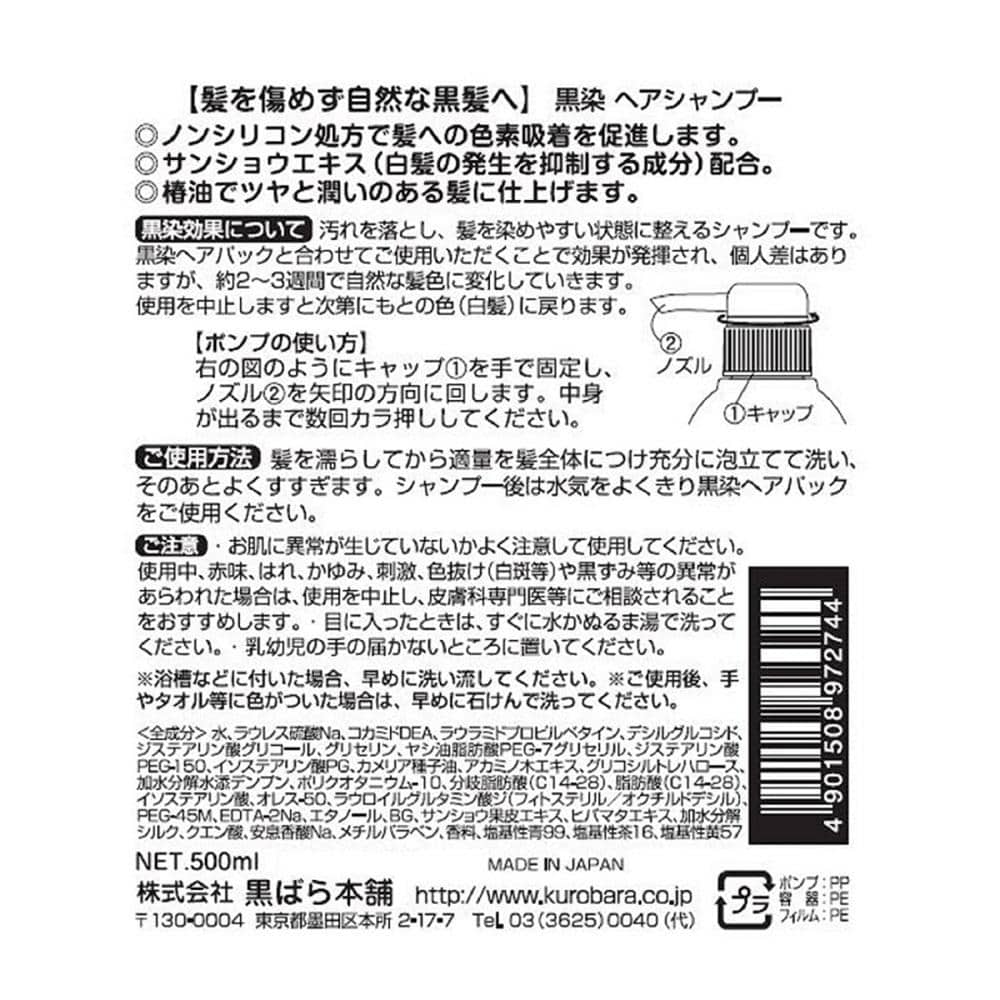 頭皮や髪を傷めず、少しずつ白髪を目立たなくする黒染は、色素を髪表面にイオン吸着させる方法(マイナスに帯電している毛髪に、プラスに帯電した色素がイオンとなって付着します)でやさしく色を重ねていきます。 シャンプー後、必ずヘアパックをご使用ください。 ご使用を中止すると、徐々にもとの色(白髪)に戻ります。