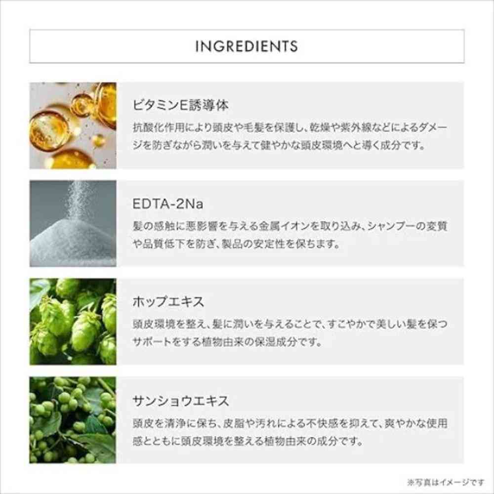 ●髪と頭皮を同時ケア うるおいを与え、しなやかで扱いやすい髪に導きます。 ●ダメージ補修 毛先までなめらかに整え、パサつきを防ぎます。 ●心地よい香り リラックス感のある香りで、ケアタイムを快適に。