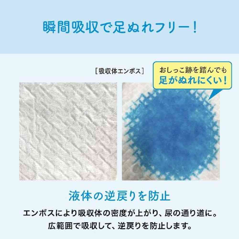 たっぷり&瞬間吸収で足ぬれフリー。極小ポリマーでパワフル消臭。グラスフィール成分配合でまるでお外。