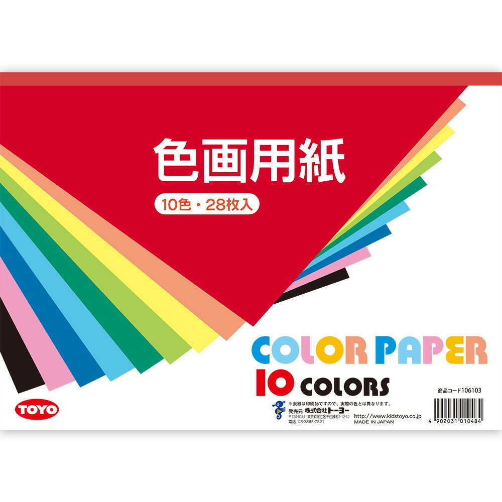 10色のよく使ういろを集めた、色画用紙です。 パッドタイプですのでバラバラになりにくいです。 工作やPOP作成など幅広い用途にお使いいただけます。