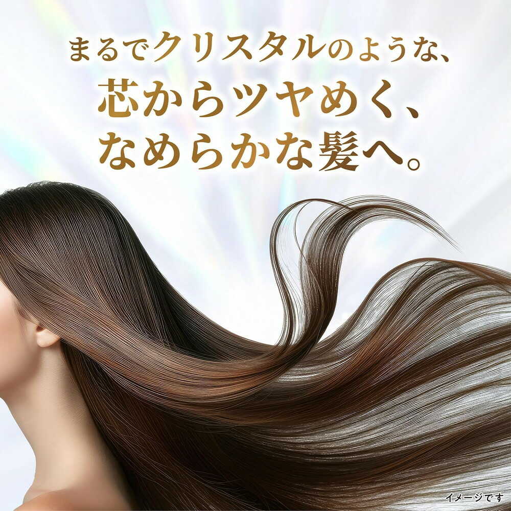 約1/700*1極小クリスタルアミノ*2配合処方。 枝毛・切れ毛を防ぎ、芯からツヤめく、なめらか髪へと導く。 アミノ酸(補修・保湿成分)を含んだ処方が髪の深層部にまで高浸透。 7つの蓄積ダメージ*3を集中補修。 優雅なスズラン&ジャスミンの香り。 *1キューティクルの厚さとクリスタルアミノの分子サイズの比較 *2セリン(補修成分) *3UV、熱、乾燥、パーマ、ブリーチ、カラー、摩擦によるダメージ
