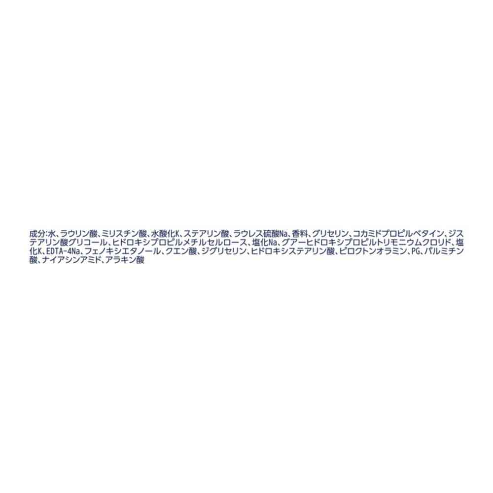 水、ラウリン酸、ミリスチン酸、水酸化K、ステアリン酸、ラウレス硫酸Na、香料、グリセリン、コカミドプロピルベタイン、ジステアリン酸グリコール、ヒドロキシプロピルメチルセルロース、塩化Na、グアーヒドロキシプロピルトリモニウムクロリド、塩化K、EDTA-4Na、フェノキシエタノール、クエン酸、ジグリセリン、ヒドロキシステアリン酸、ピロクトンオラミン、PG、パルミチン酸、ナイアシンアミド、アラキン酸