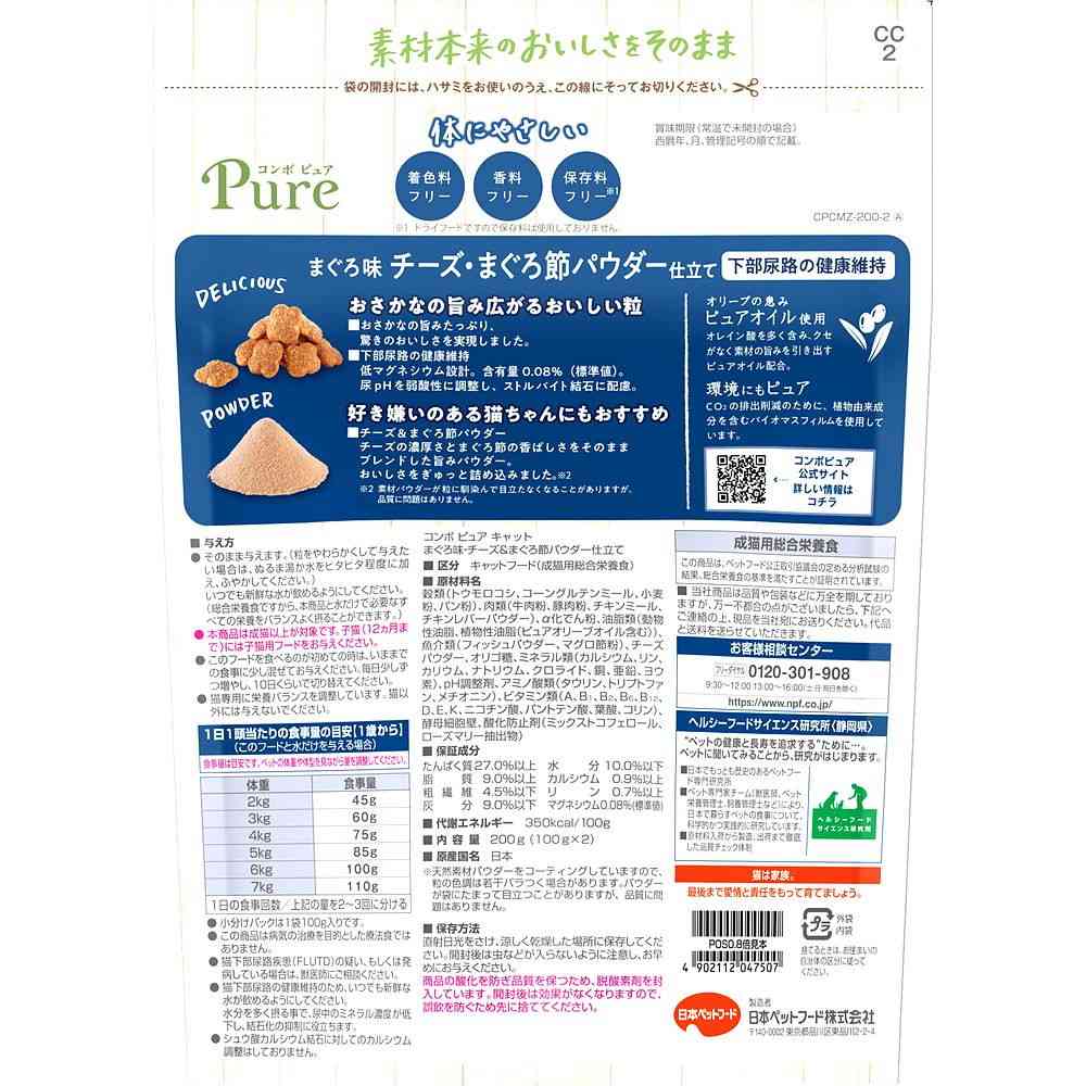 着色料・香料・保存料無添加のピュアなおいしさ。 おいしいまぐろ味粒にチーズ&まぐろ節パウダー入り。