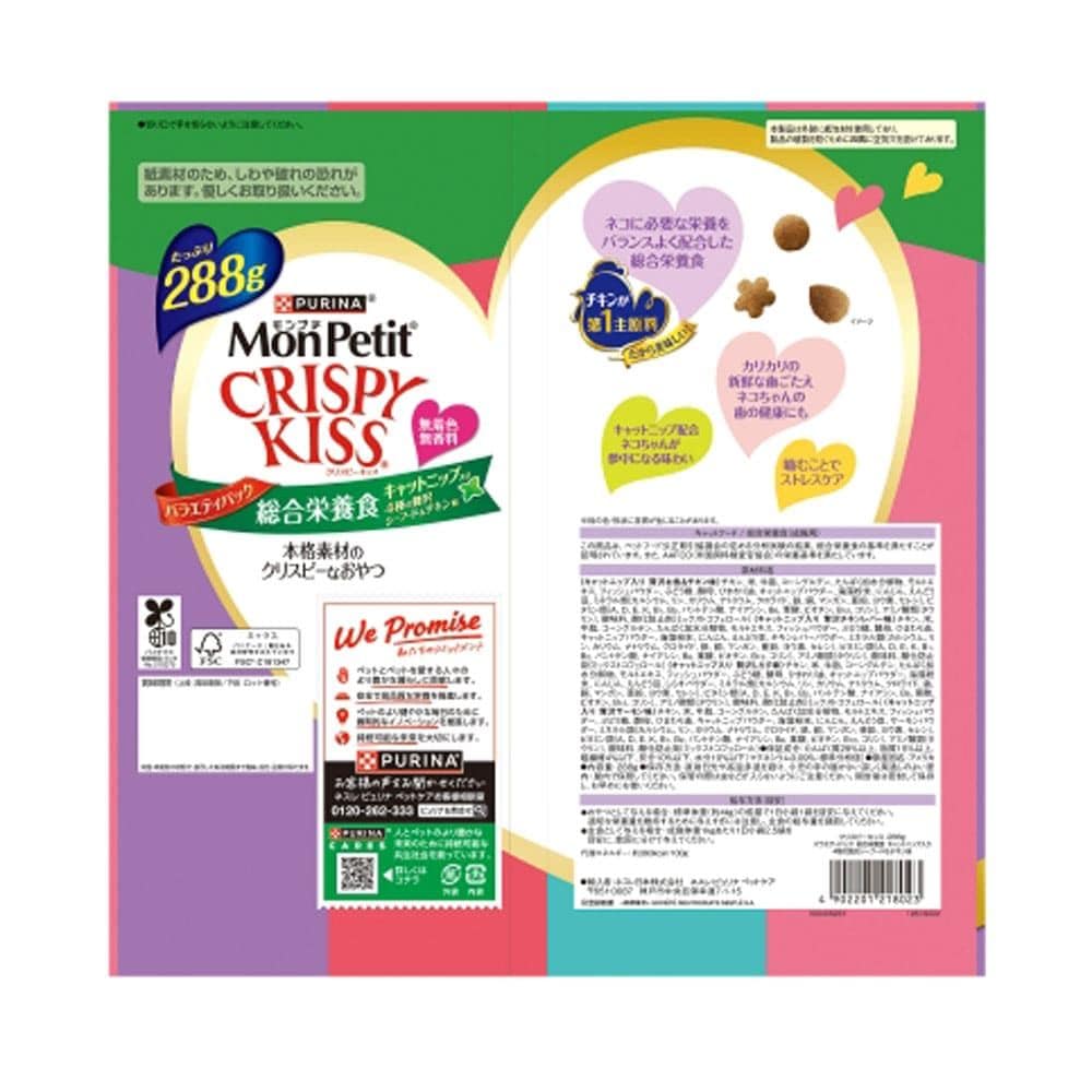 ●おやつとして与える場合:標準体重(約4kg)の成猫で1日小袋1袋を目安に与えてください。適切な栄養量を維持するために与えすぎには注意し、主食の給与量を調節してください。●主食として与える場合:成猫体重1kgあたり1日小袋2.5袋を目安に、数回に分けて与えてください。